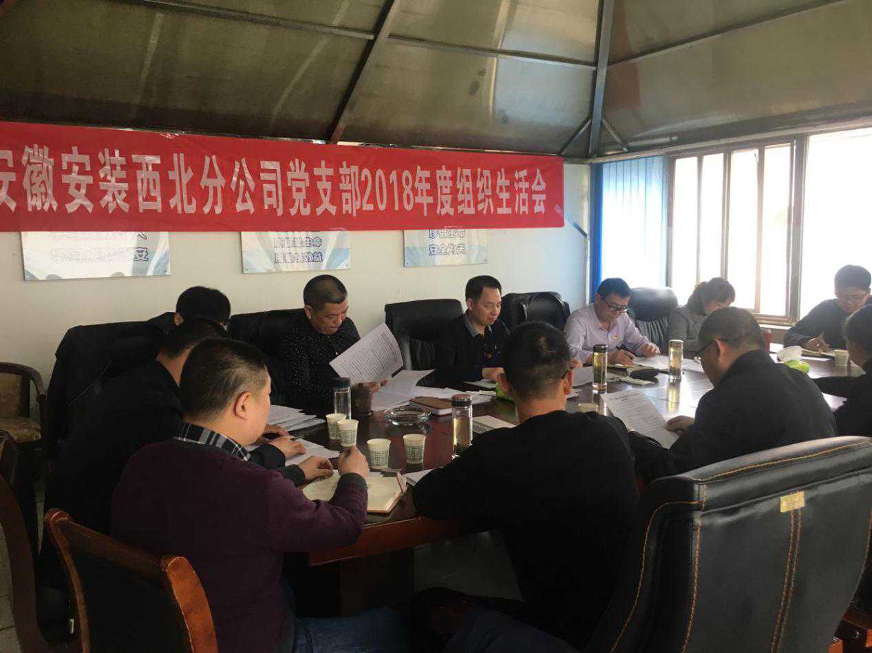 3月17日下午,西北分公司分公司黨支部召開2018年度組織生活會,公司黨委書記、董事長胡六中,紀委書記、工會主席李寬旭,副總經理王軍到會指導,分公司全體黨員代表參加了會議,會議由分公司黨支部書記江輝主持。