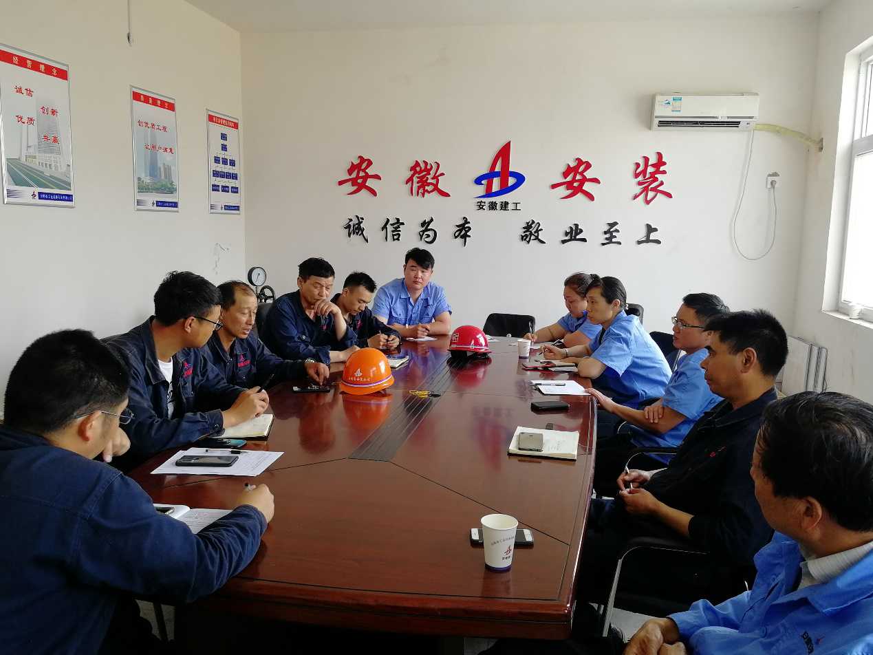在對施工現(xiàn)場進行全面安全檢查后,隨即在會議室召開會議,項目部全體管理人員及各項目班組負責人參加。項目執(zhí)行經(jīng)理張漢軍首先匯報了現(xiàn)場的進度、質(zhì)量等情況。