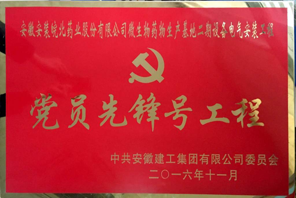 近日集團公司黨員先鋒號工程創建活動領導小組的檢查驗收和評定,公司安徽省皖北藥業股份有限公司微生物藥物生產基地二期設備電氣安裝工程”榮獲集團公司黨員先鋒號”工程