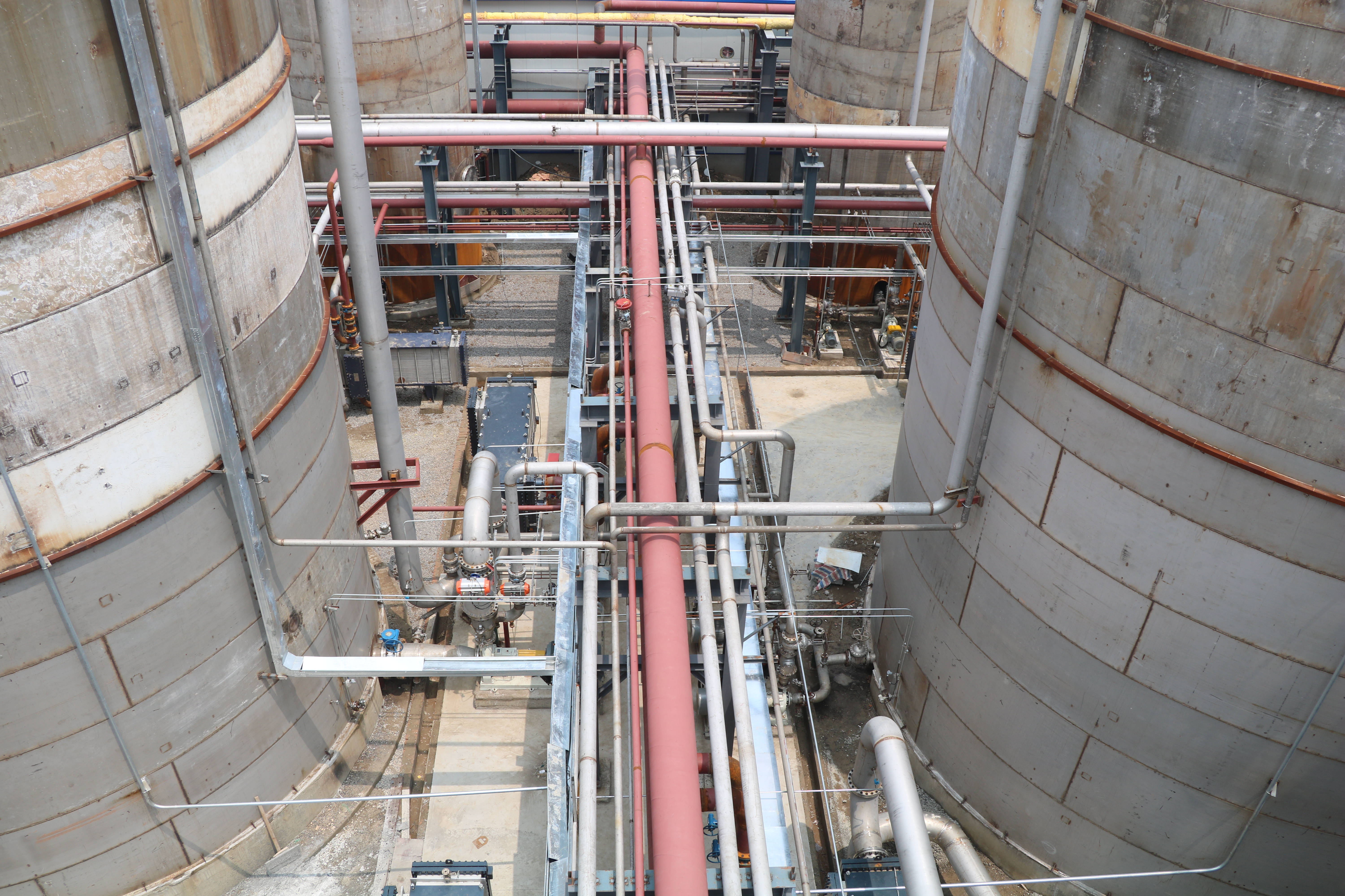 2018年10月,蚌埠分公司中標宿州中糧無水乙醇搬遷技改項目。該項目為發酵工序區域以及酒精罐區、混配站裝置區域裝置利舊設備拆遷(保護性拆除)轉運(含各類罐22臺、離心機組3套)非標設備制作安裝,設備總重量約1055噸,工藝管道約4500米及電氣儀表專業施工。工程總造價1584萬元。