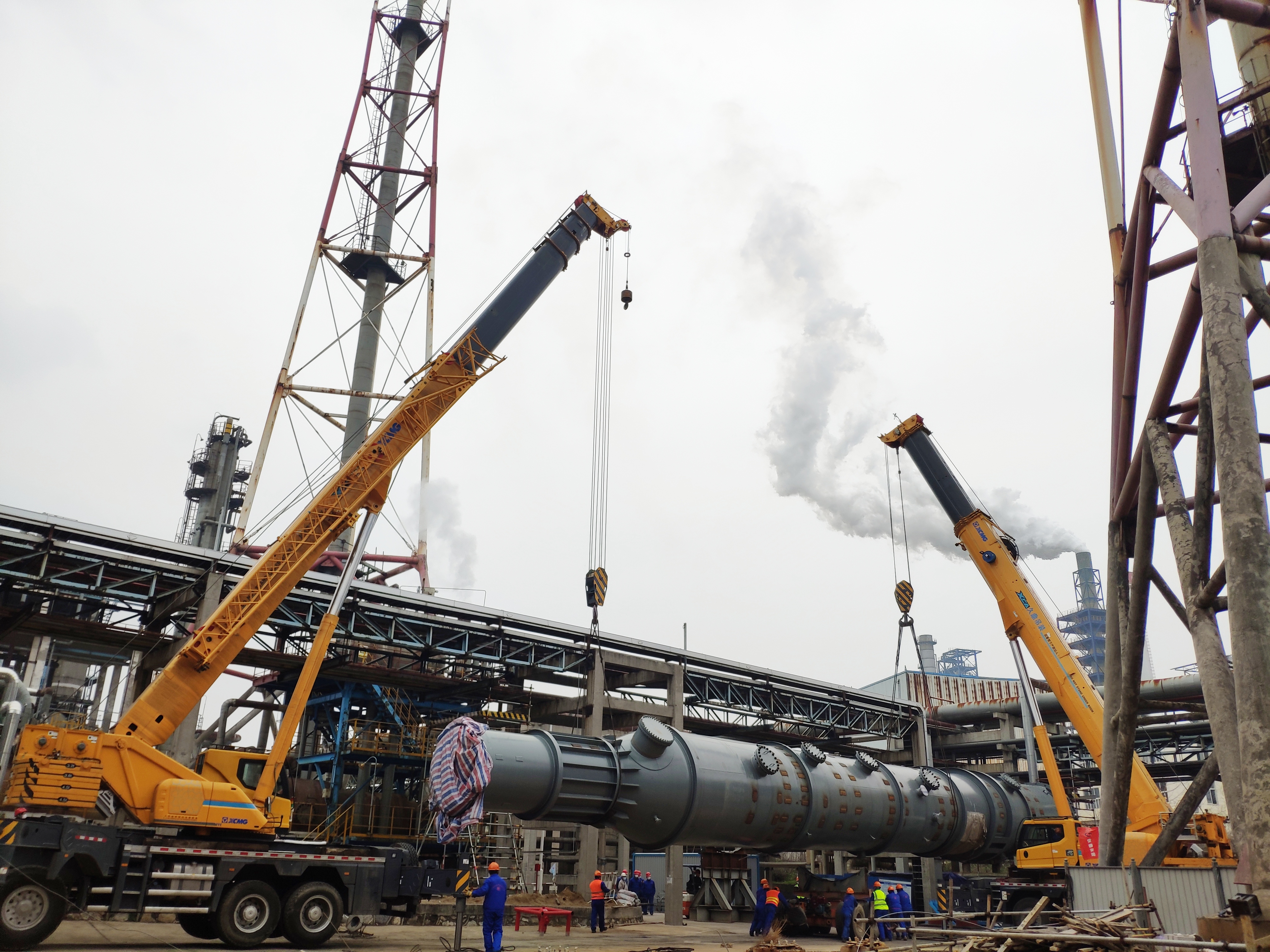 此次脫硫塔下段倒運是“Ⅰ、Ⅱ硫磺回收裝置增設煙氣后堿洗流程工程”的重要節點,任務的順利完成也是安慶石化后堿洗項目2020年的開門紅,為下一階段脫硫塔組對和工藝管道安裝創造了有利條件,也一掃新冠肺炎疫情帶來的陰霾,鼓舞了項目部的士氣,獲得業主、監理們的高度贊許和肯定。