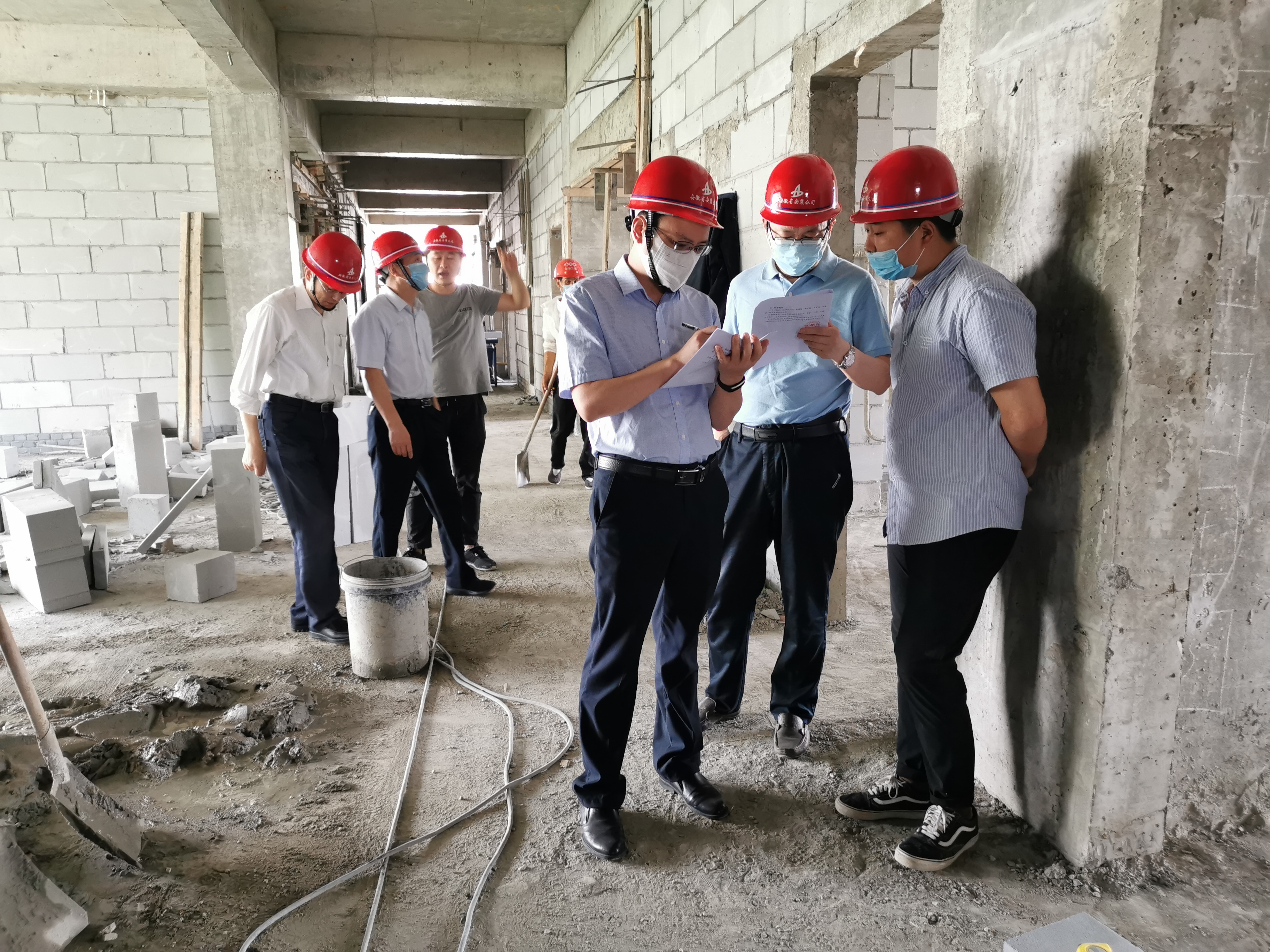 5月23日,公司紀委書記、工會主席李寬旭及公司勞動競賽領導小組赴阜陽潁東中醫院建設PPP項目進行項目“勞動競賽”督導檢查工作,房建(裝飾)分公司領導班子成員參加檢查。
