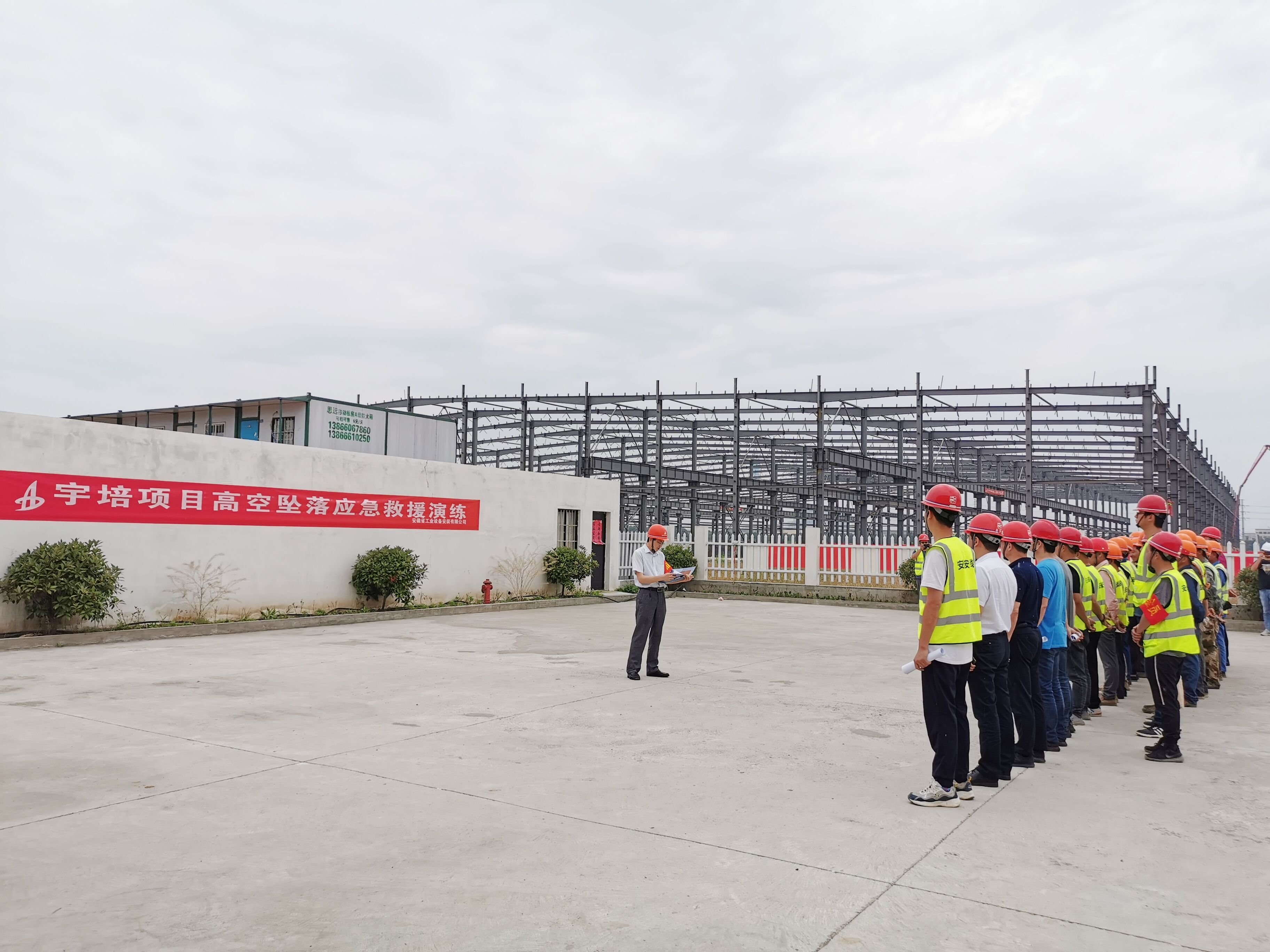 為了做好突發(fā)安全事故應(yīng)急救援工作,進(jìn)一步加強(qiáng)檢驗(yàn)公司、分公司及項(xiàng)目部三級(jí)應(yīng)急響應(yīng)能力,促進(jìn)應(yīng)急救援的體系建設(shè),2020年5月25日下午,安徽安裝公司在蕪湖宇培新型裝配材料有限公司年產(chǎn)50萬(wàn)方建筑工業(yè)化構(gòu)件生產(chǎn)基地項(xiàng)目1#廠房作業(yè)區(qū)舉行了高空墜落應(yīng)急救援演練,公司紀(jì)委書(shū)記、工會(huì)主席李寬旭及公司、分公司相關(guān)部門(mén)同志一行赴項(xiàng)目參加此次演練活動(dòng)。