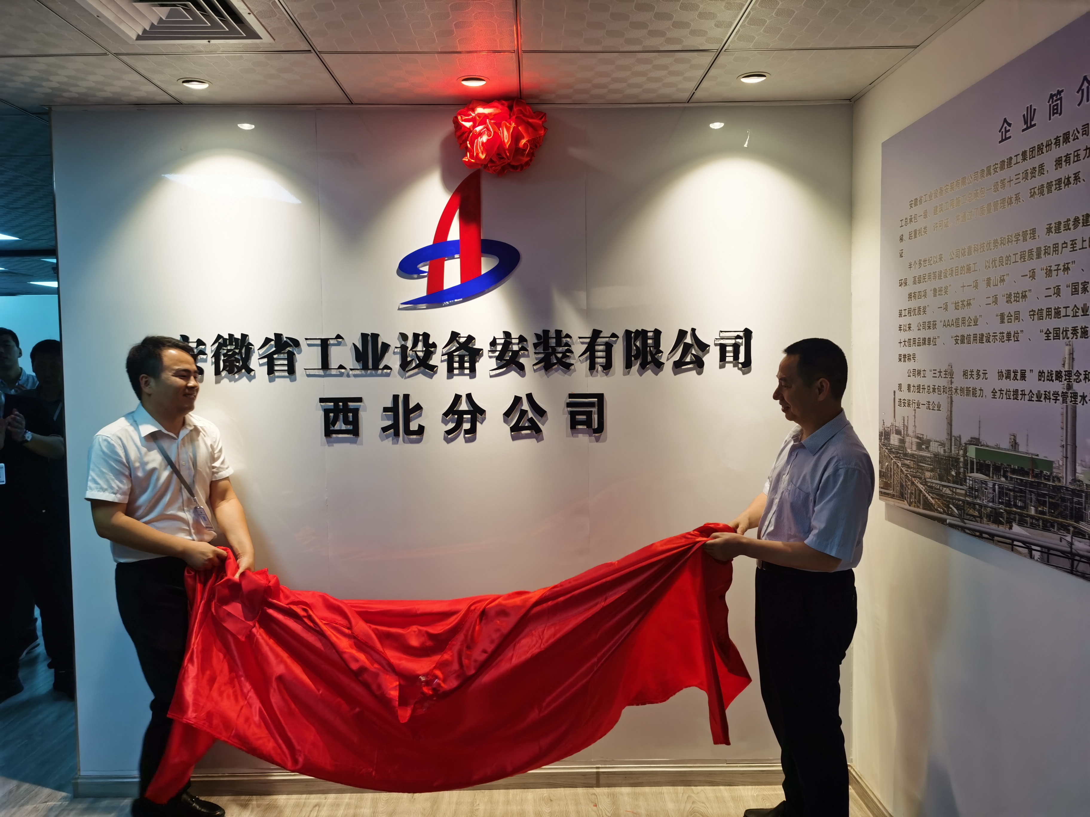 6月8日上午,安徽安裝西北分公司舉行搬遷揭牌儀式,安徽安裝公司黨委書記、董事長胡六中,副總經(jīng)理、新疆烏蘇分公司經(jīng)理王軍一行出席了儀式,本次儀式由西北分公司黨支部書記江輝主持。