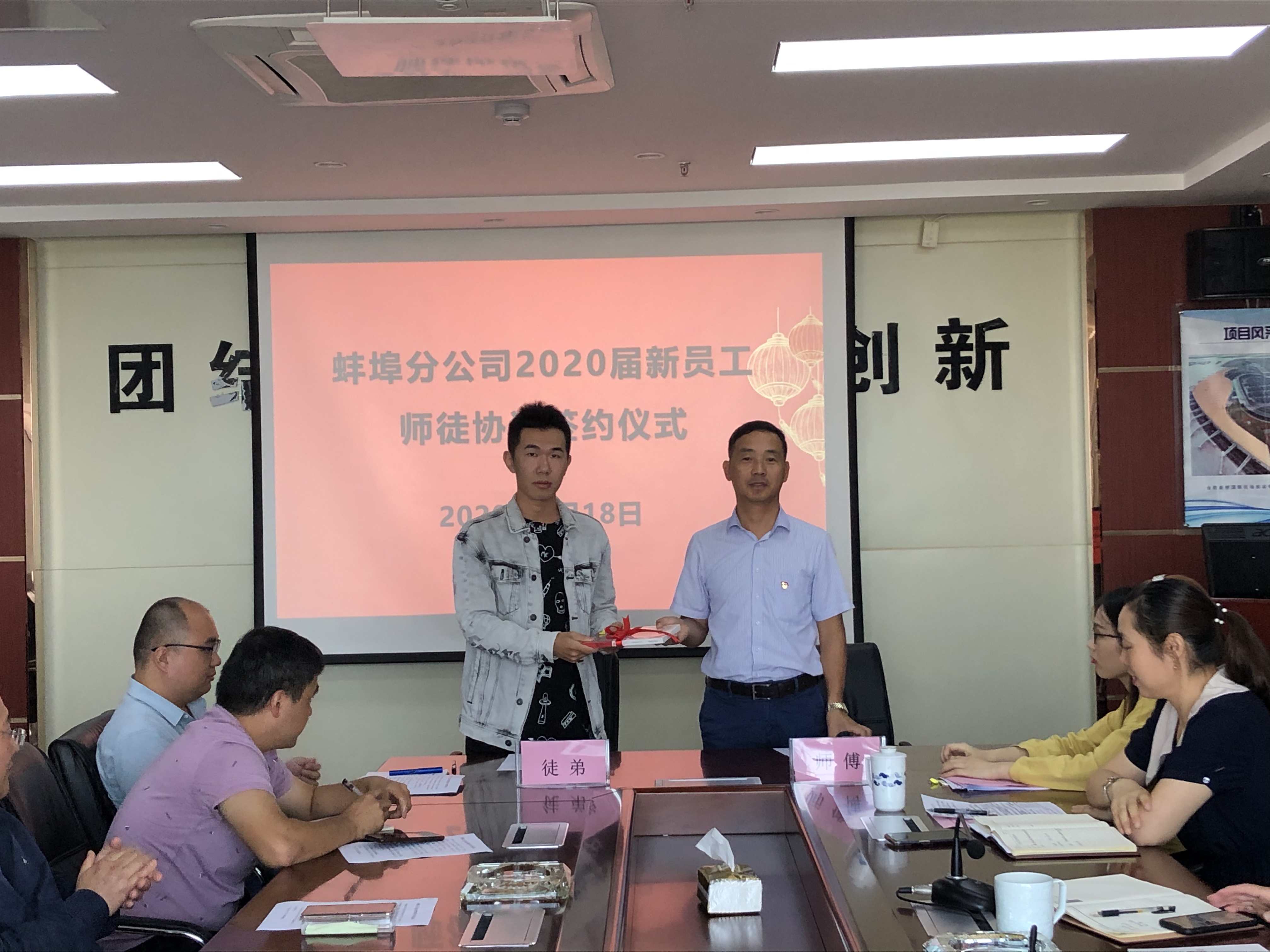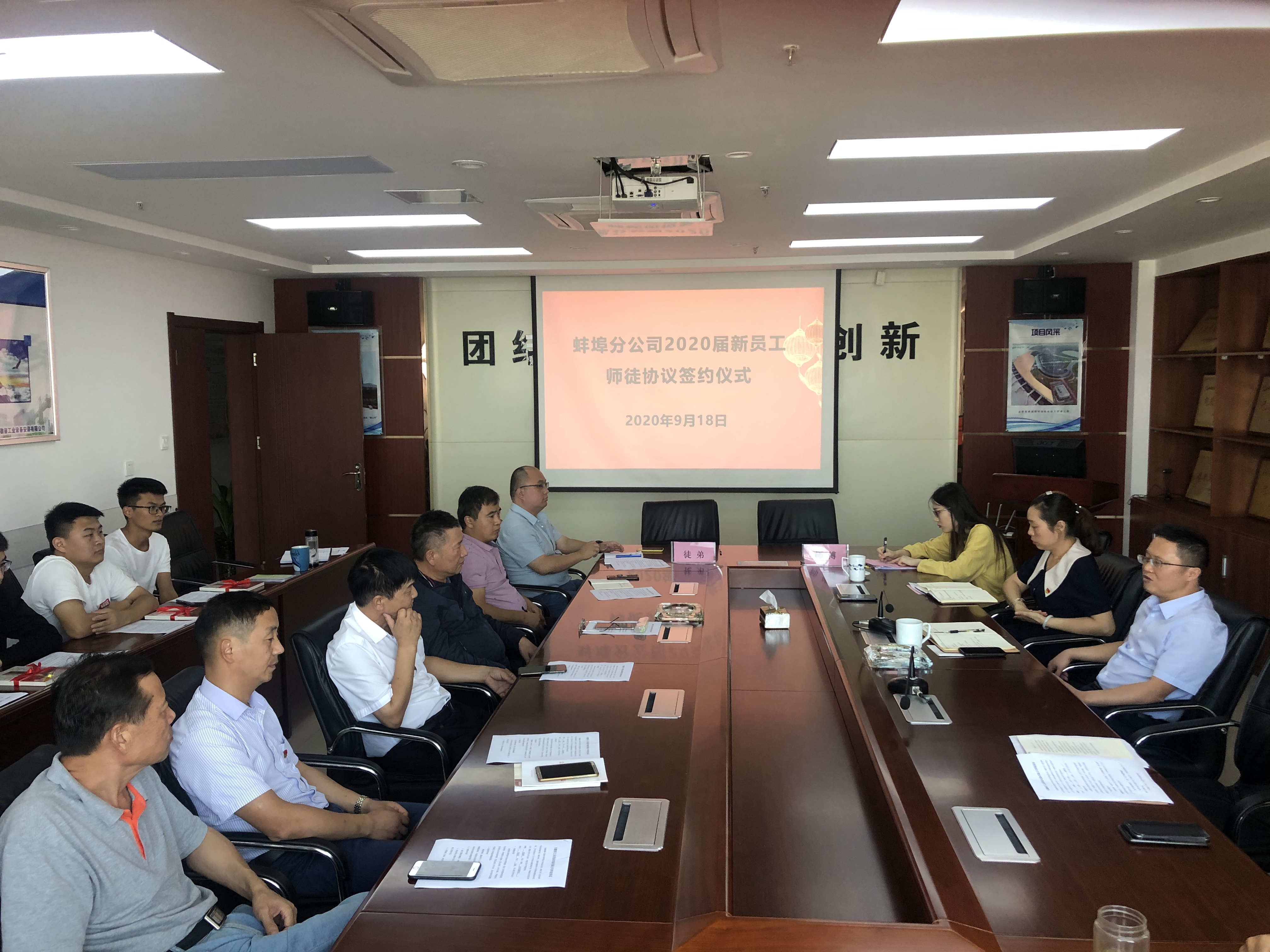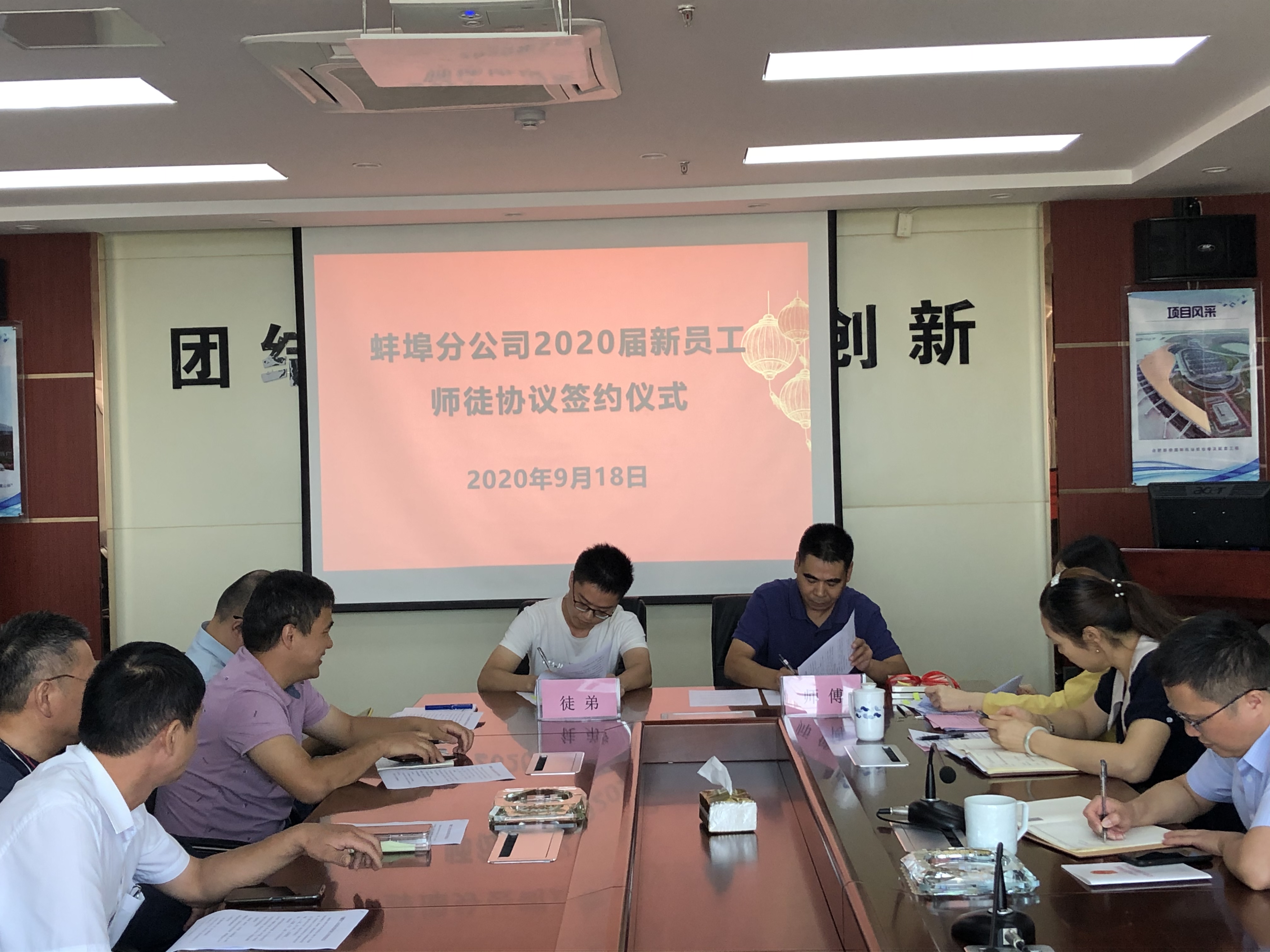 為了幫助新入職大學生盡快適應企業,熟悉工作,勝任崗位,2020年9月18日上午蚌埠分公司黨支部舉行了“2020屆新員工師徒結對”簽約儀式。分公司班子成員、部門負責人、項目經理、師傅及2020屆新入職大學生參加了此次會議。