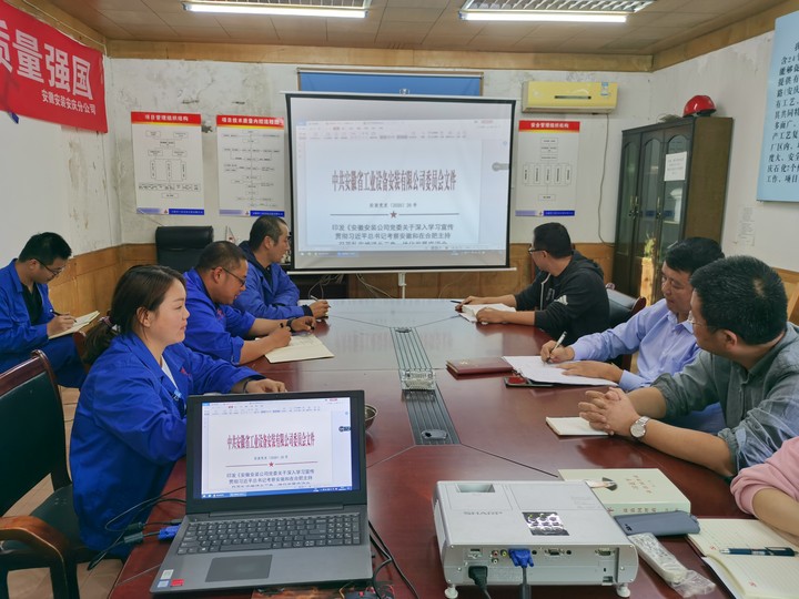 9月24日下午,安慶分公司黨支部組織召開黨員大會集中學習習近平總書記視察安徽重要講話精神。分公司黨員、項目一線員工參加。