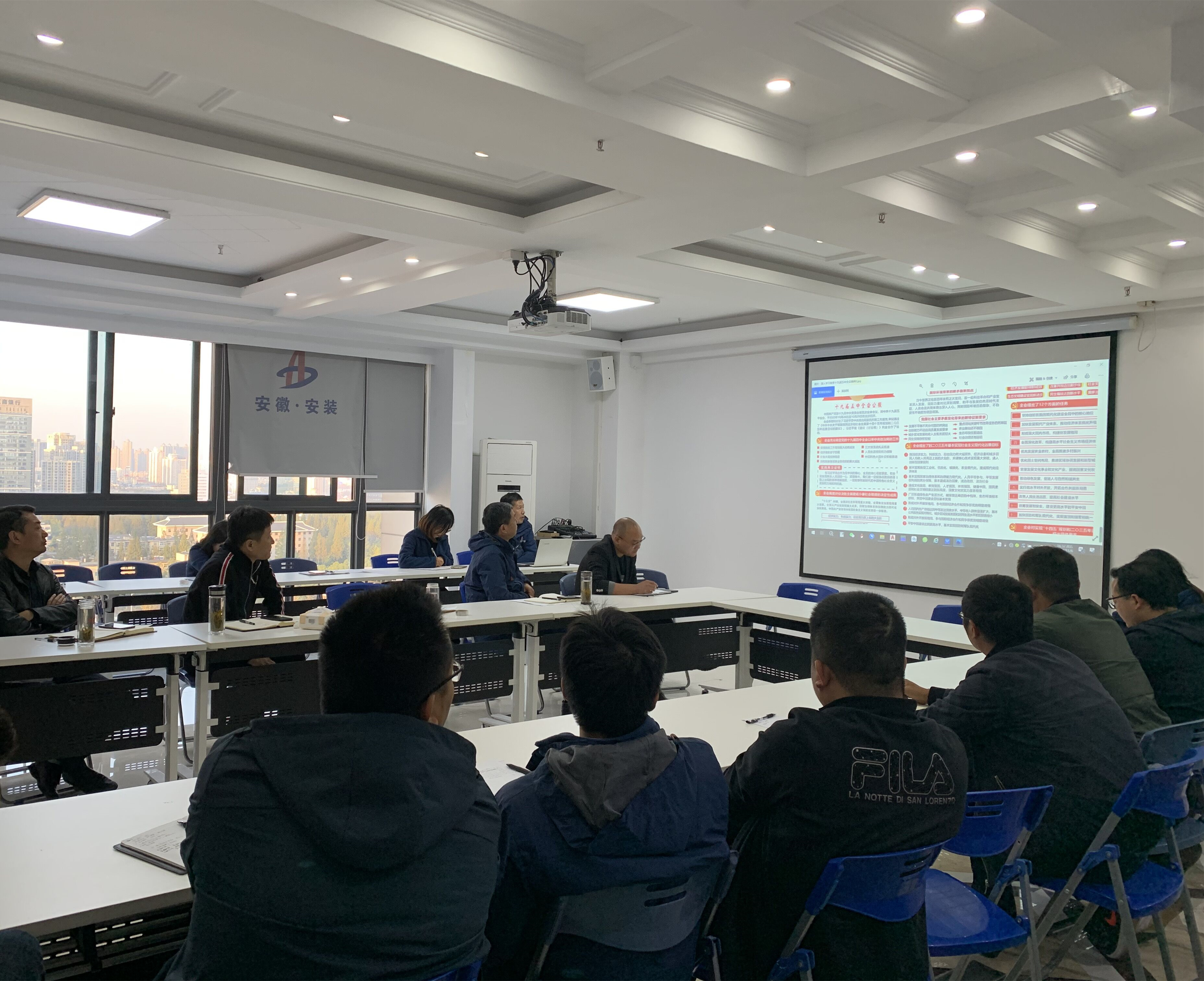 為深入學(xué)習(xí)黨的十九屆五中全會(huì)精神,貫徹宣傳黨的大政方針,11月6日合肥分公司黨支部組織舉行十九屆五中全會(huì)專題理論學(xué)習(xí)擴(kuò)大會(huì),分公司領(lǐng)導(dǎo)班子成員、支委委員、入黨積極分子、機(jī)關(guān)全體工作人員參與會(huì)議,會(huì)議由支部書記胡迎東主持。