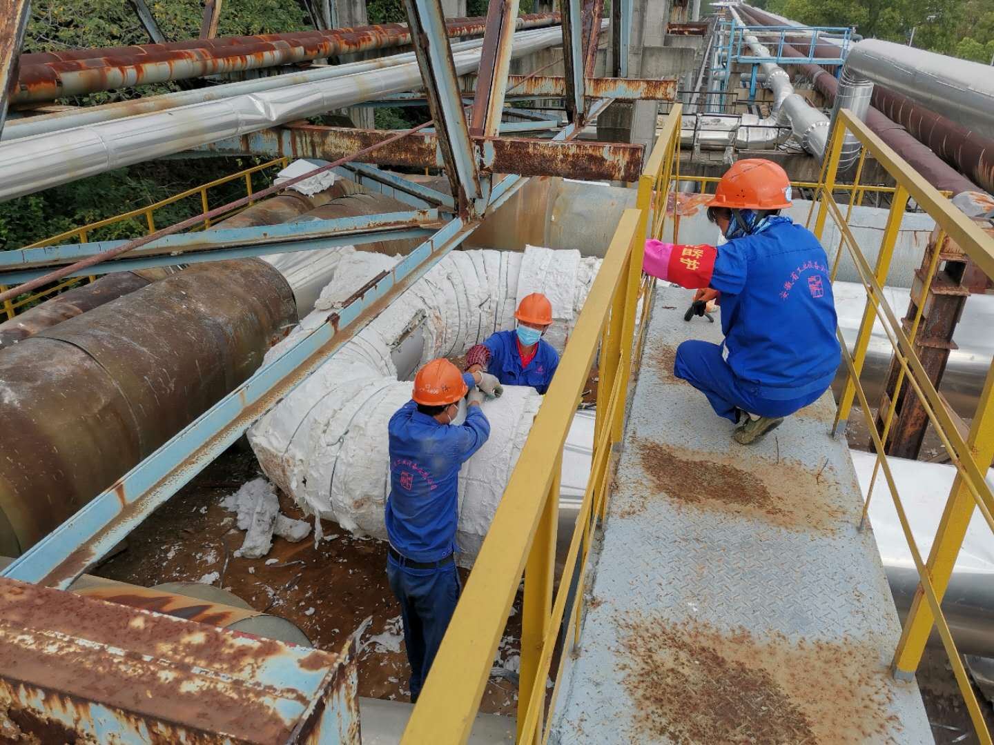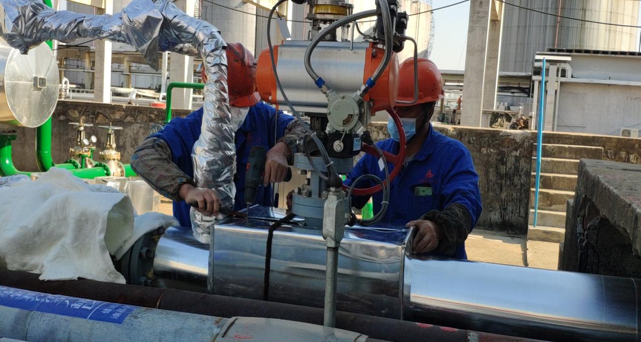 在安慶石化重污油罐尾氣治理項目上,工人們正在進(jìn)行管道保溫施工工作。分段管道的保溫施工按照不同吊裝地點合適程度而定,目前采用地面管道保溫施工,完成后留出焊縫及吊點位置,待吊裝后再及時進(jìn)行焊縫及吊點保溫施工工作。