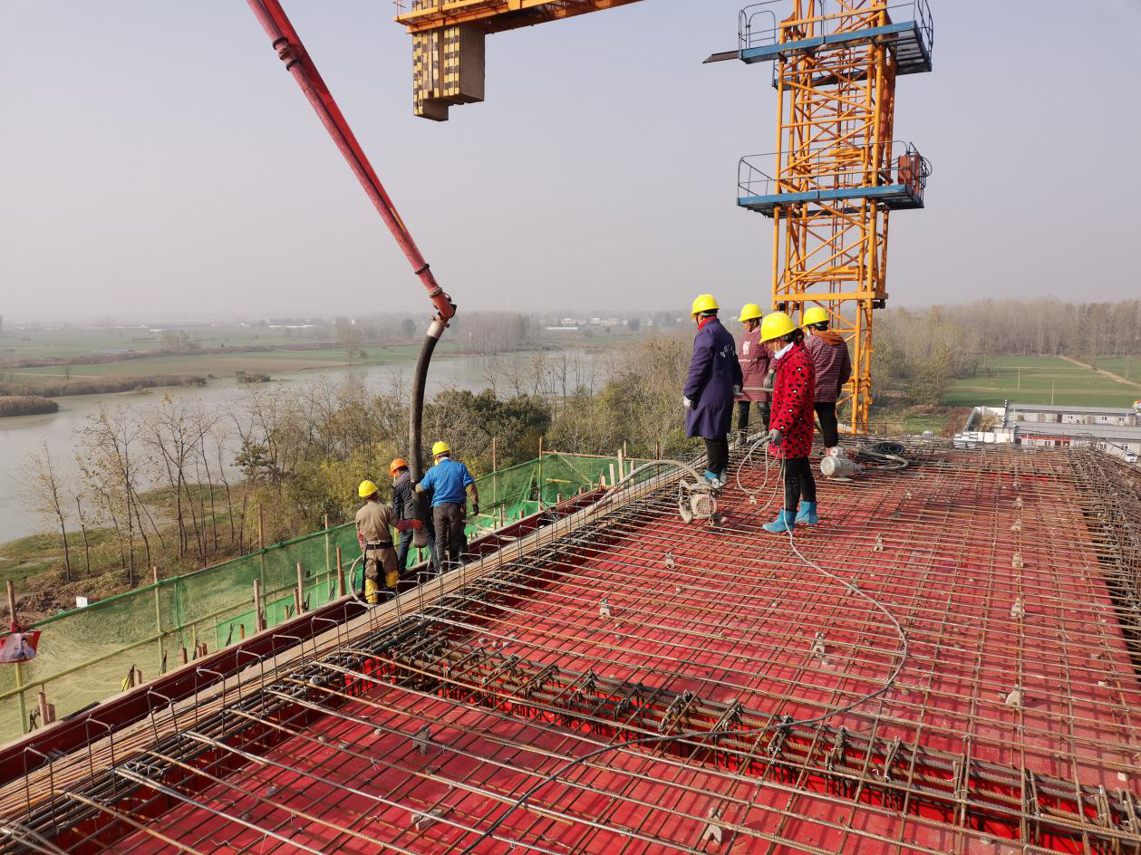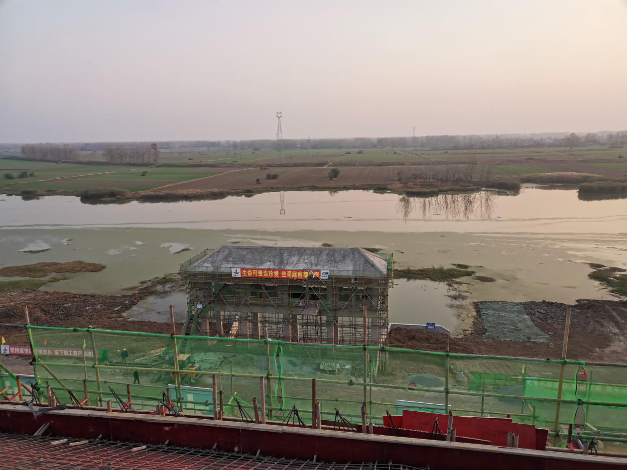 為堅決貫徹落實黨的十九屆五中全會精神和習近平總書記考察安徽重要講話精神,項目部團隊切實把生產任務與新時代要求結合起來,強使命、明舉措、勇擔當,在攻堅克難中奮力前行,在爭分奪秒中苦干實干,為大干四季度,全面實現年度各項目標任務不斷沖鋒沖刺。截止11月8日,不到兩個月的時間內,化家溝泵站主廠房已順利完成封頂;目前,化家溝副廠房一層模板在建,管理房已完成土方回填,進、出水閘啟閉機房已完成磚砌體,室外道路已完成水泥土置換地基加固,一切都在按施工進度順利且快速推進,為爭取提前啟動工程防洪排澇、造福人民的使命而努力。