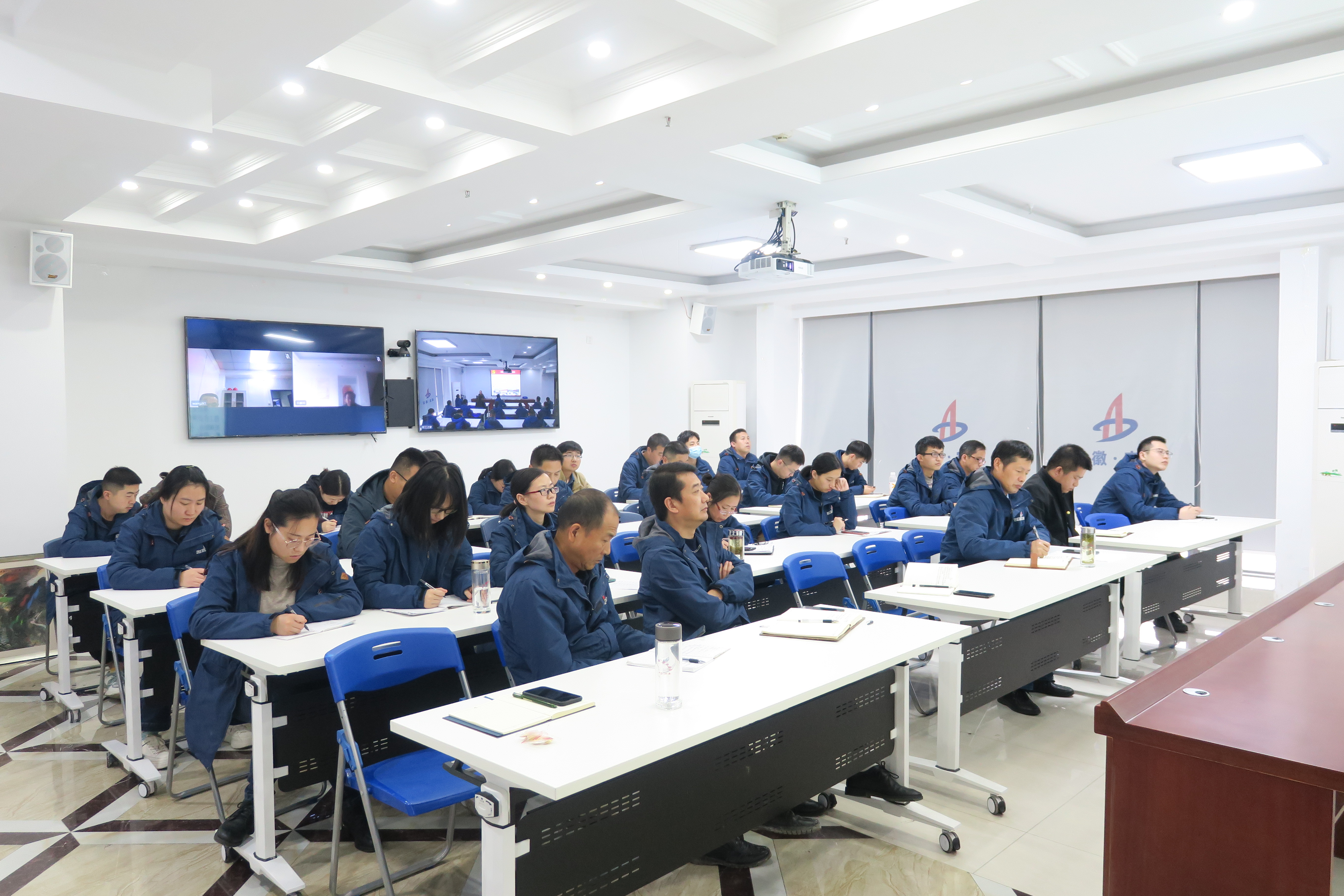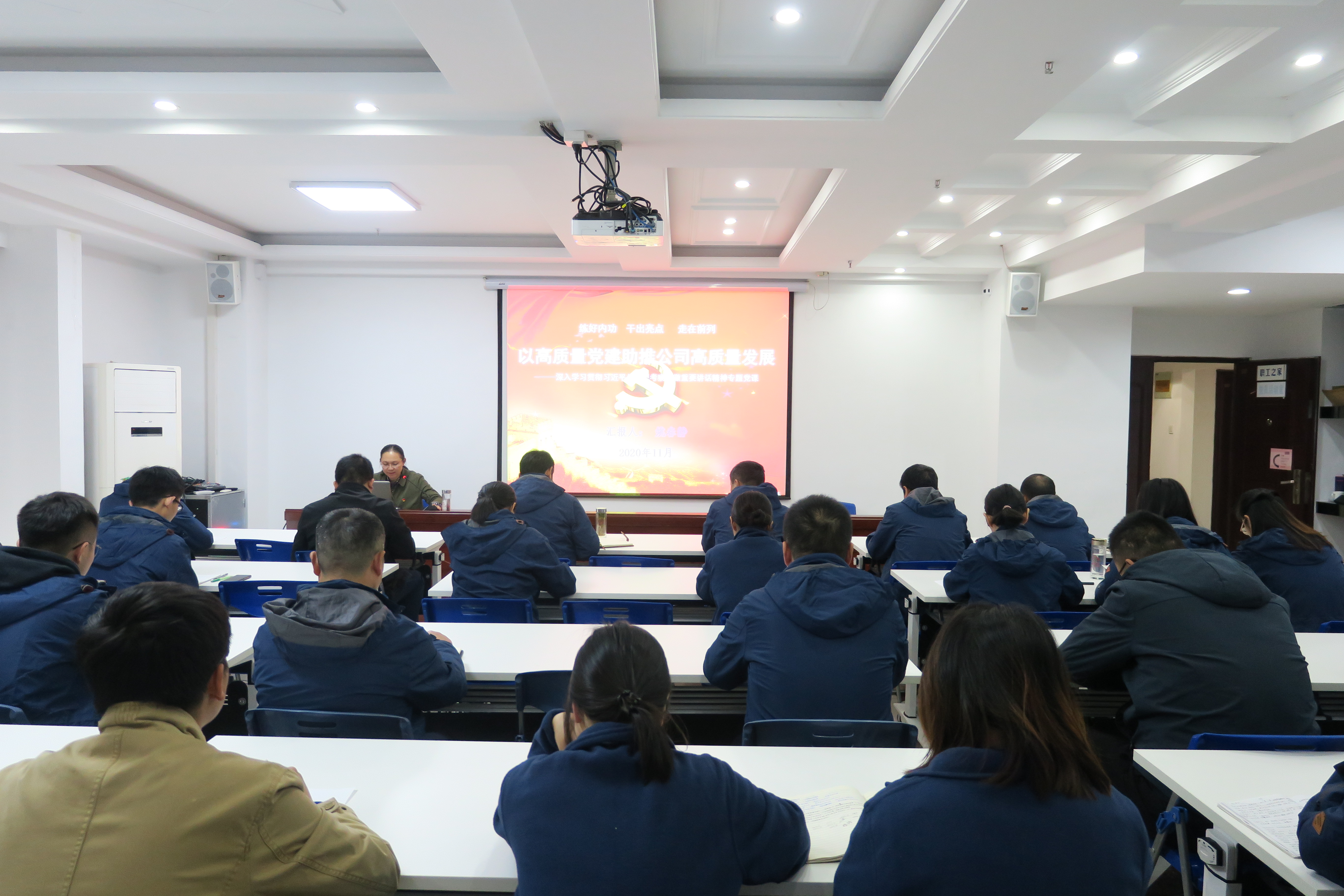 11月19日下午,公司機(jī)關(guān)第二黨支部書(shū)記姚春靜赴合肥分公司作題為《練好內(nèi)功·干出亮點(diǎn)·走在前列 以高質(zhì)量黨建助推公司高質(zhì)量發(fā)展——深入學(xué)習(xí)貫徹習(xí)近平總書(shū)記考察安徽重要講話精神》專(zhuān)題黨課,分公司領(lǐng)導(dǎo)班子成員、支部黨員、入黨積極分子、青年團(tuán)員、機(jī)關(guān)及在肥人員共40余人參加了會(huì)議。會(huì)議以視頻的方式進(jìn)行,主會(huì)場(chǎng)設(shè)在公司職工之家,靈璧項(xiàng)目部、潛山項(xiàng)目部設(shè)立了分會(huì)場(chǎng)。