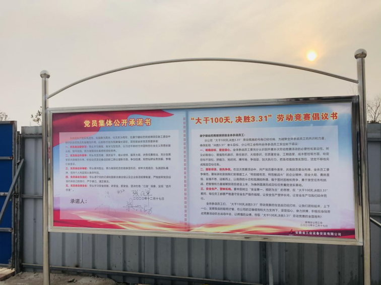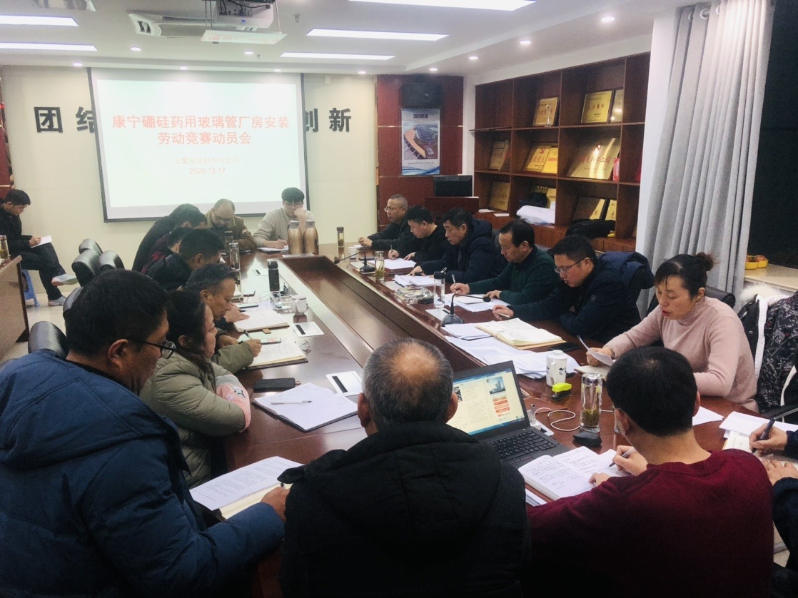 這是一場(chǎng)一開始就注定與時(shí)間賽跑的戰(zhàn)斗,這也是對(duì)安徽安裝蚌埠康寧項(xiàng)目部全體參戰(zhàn)人員攻堅(jiān)克難、敢打能勝的全面檢驗(yàn)。2020年12月8日,康寧項(xiàng)目部召開“大干100天  決戰(zhàn)決勝3.31”勞動(dòng)競(jìng)賽啟動(dòng)大會(huì),全面吹響大干快上的總號(hào)角。公司副總經(jīng)理高飛、劉安俊分別作動(dòng)員講話,要求全體參建人員要凝心聚力、統(tǒng)一思想,全力以赴,嚴(yán)格按照“高標(biāo)準(zhǔn)起步,高質(zhì)量建設(shè)、高效率推進(jìn),高層次達(dá)標(biāo)”的總要求,創(chuàng)新管理模式、集中優(yōu)勢(shì)資源、統(tǒng)籌推進(jìn)各項(xiàng)工作,全力以赴建好項(xiàng)目,樹立企業(yè)良好形象。
