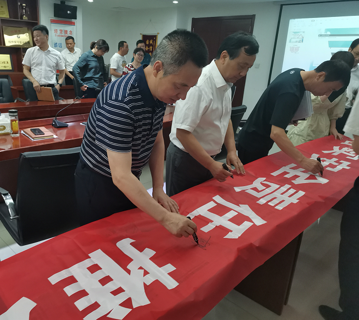 會(huì)議傳達(dá)了安徽安裝公司“安全生產(chǎn)月”活動(dòng)方案,并對(duì)“安全生產(chǎn)月”的各項(xiàng)活動(dòng)進(jìn)行了動(dòng)員部署,組織全體參會(huì)人員集中觀看《生命重于泰山--學(xué)習(xí)習(xí)近平總書(shū)記關(guān)于安全生產(chǎn)重要論述》專(zhuān)題片并進(jìn)行安全宣誓,在主題橫幅上鄭重簽名,做出莊嚴(yán)的安全承諾。