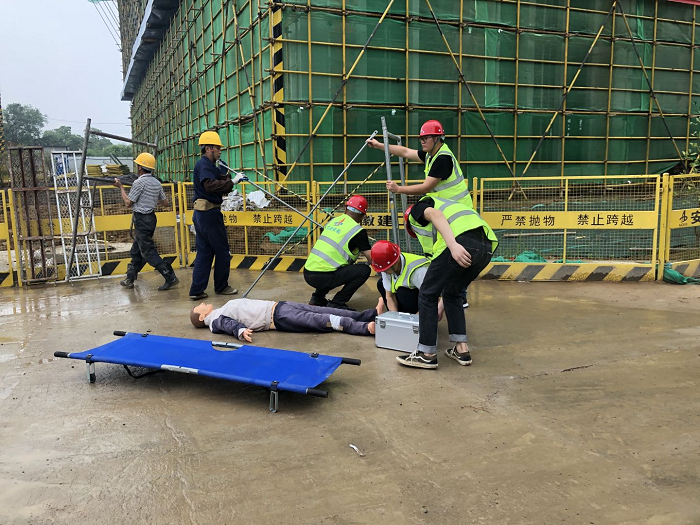 此次演練內容為在活動腳手架拆除的過程中,作業(yè)人員突然發(fā)生高處墜落事故。演練過程模擬了事故發(fā)生、信息上報、現場處置、現場救治、心肺復蘇、應急狀態(tài)解除、善后處置等環(huán)節(jié)。本次演練指導思想明確,組織工作嚴密,準備工作充分,事故處理井然有序,演練圓滿完成。