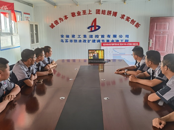 新疆烏蘇市供水改擴建調(diào)節(jié)蓄水池項目部集中觀看節(jié)目