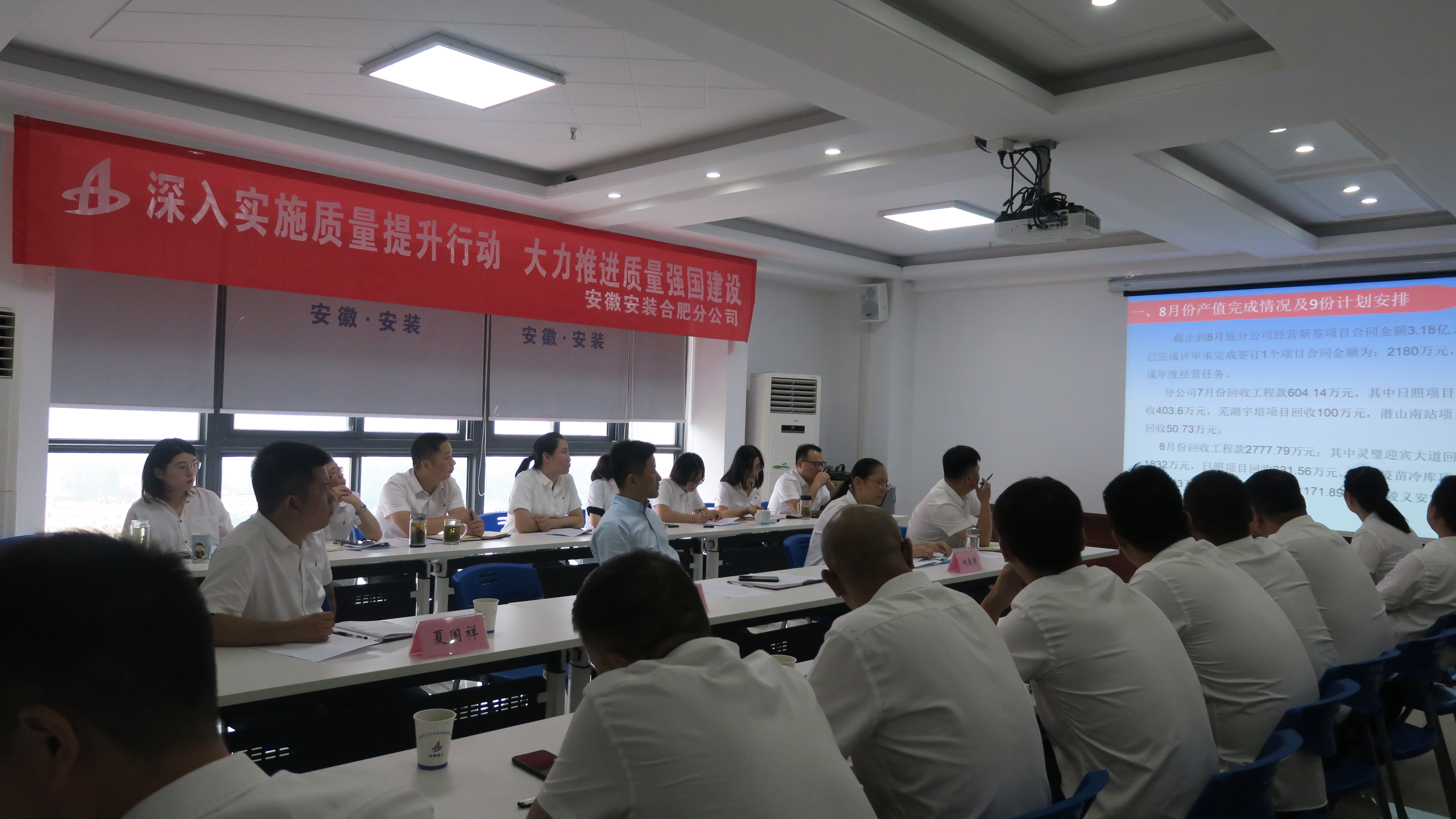 會(huì)上,工程管理部首先對(duì)截至8月底分公司在建工程統(tǒng)計(jì)盤點(diǎn)、各項(xiàng)目收款情況、各項(xiàng)指標(biāo)完成和9月份生產(chǎn)計(jì)劃安排等方面情況進(jìn)行通報(bào)。隨后,各在建項(xiàng)目從施工進(jìn)度、安全生產(chǎn)、次合同履約、工程款回收、工期與成本方面、雙節(jié)隱患排查方面、下一步工作計(jì)劃、急需分公司幫助解決的問題等方面逐一進(jìn)行了匯報(bào)。機(jī)關(guān)各部門依次對(duì)近期主要工作完成情況及9月份工作計(jì)劃進(jìn)行了簡要匯報(bào)。