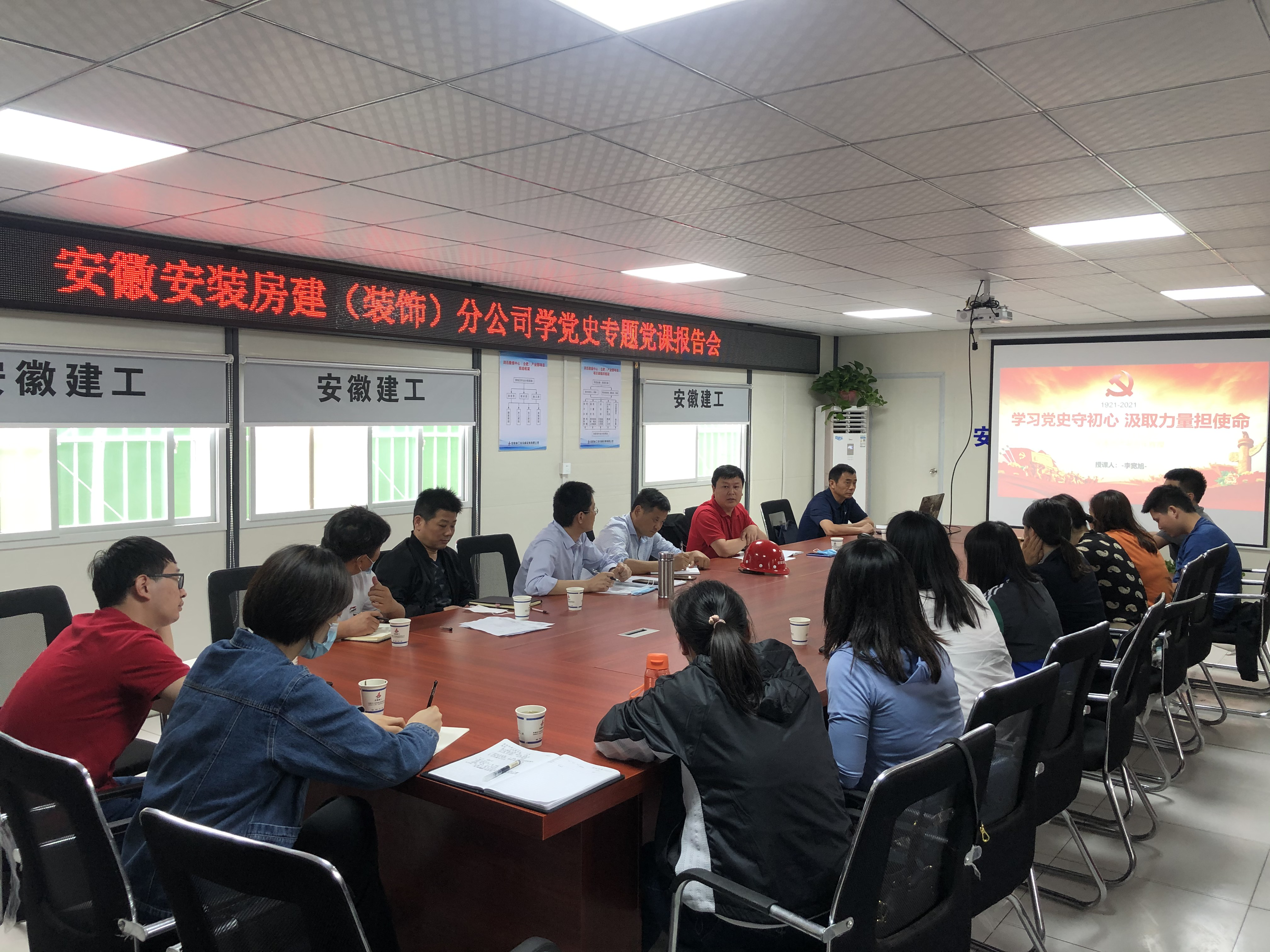 5月21日下午,根據(jù)公司黨委黨史學(xué)習(xí)教育計(jì)劃安排,公司紀(jì)委書記、工會(huì)主席李寬旭赴房建(裝飾)分公司潤(rùn)迅數(shù)據(jù)中心(合肥)產(chǎn)業(yè)園項(xiàng)目作基層黨史學(xué)習(xí)教育專題黨課報(bào)告,房建(裝飾)分公司機(jī)關(guān)人員、項(xiàng)目一線職工、團(tuán)員青年等30余人參加了會(huì)議。