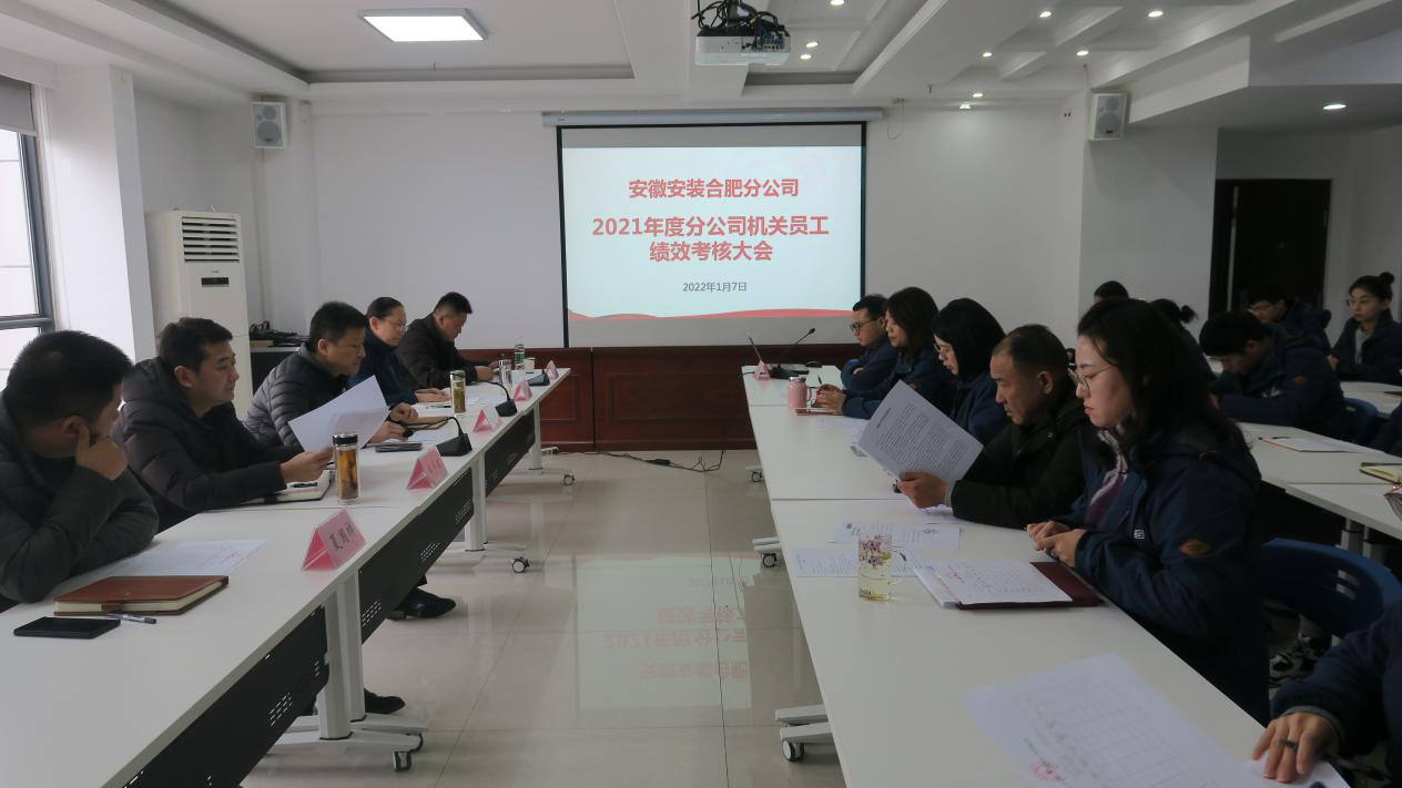 為總結回顧2021年度分公司機關各部門和各項目部的工作情況,籌劃2022年的工作任務與工作計劃,進一步完善崗位績效考核體系,調動廣大員工工作積極性、主動性和創造性,2022年1月7日至24日,合肥分公司以現場考核和視頻考核會議相結合的方式,開展了“2021年度機關部門和全體員工績效考核工作”,考核分為分公司機關部門、機關員工和項目部員工三個部分四個階段進行。