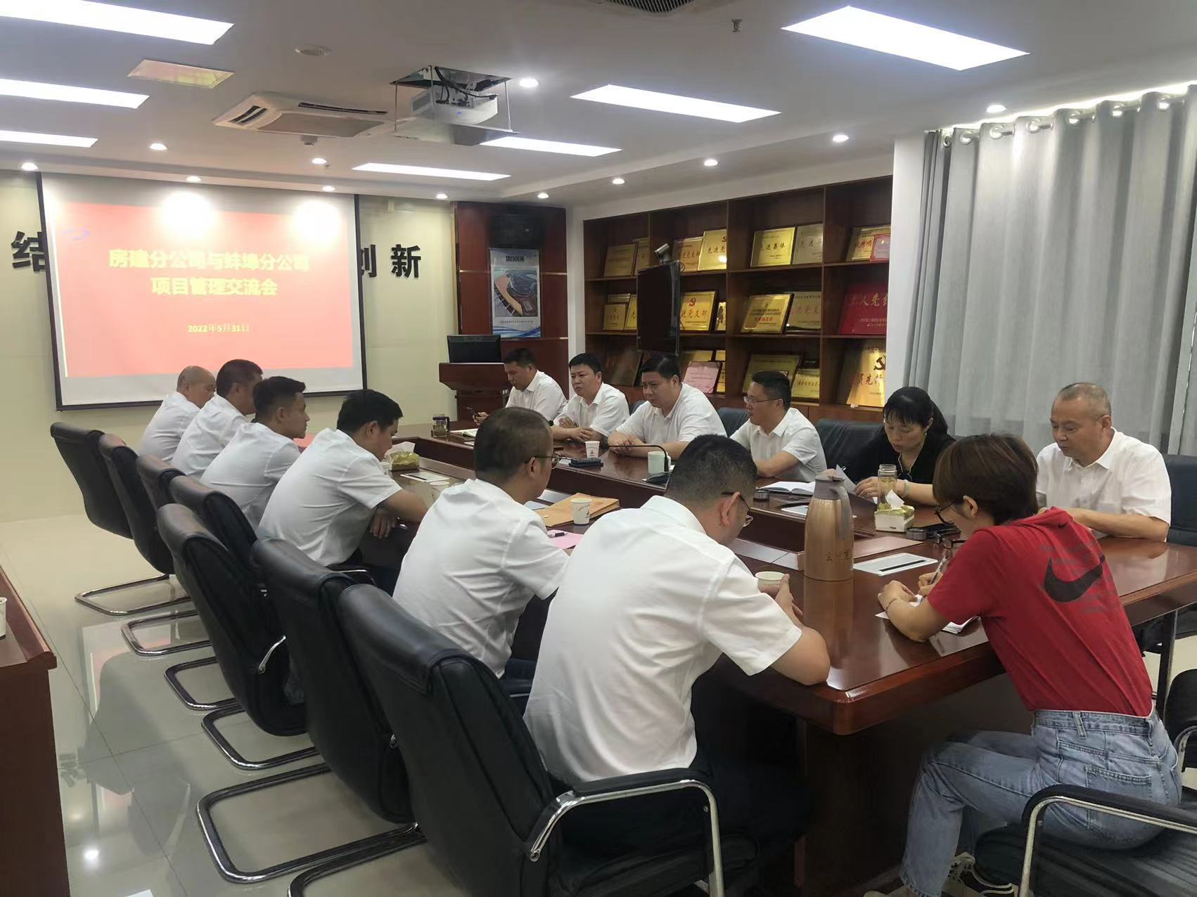 為落實公司“項目管理年”活動要求,進一步提升工程項目管理水平,5月31日,房建(裝飾)分公司領導班子帶隊赴蚌埠分公司開展項目管理經驗交流。房建(裝飾)分公司、蚌埠分公司領導班子,項目經理代表、工程管理部門有關人員代表參加了交流會。