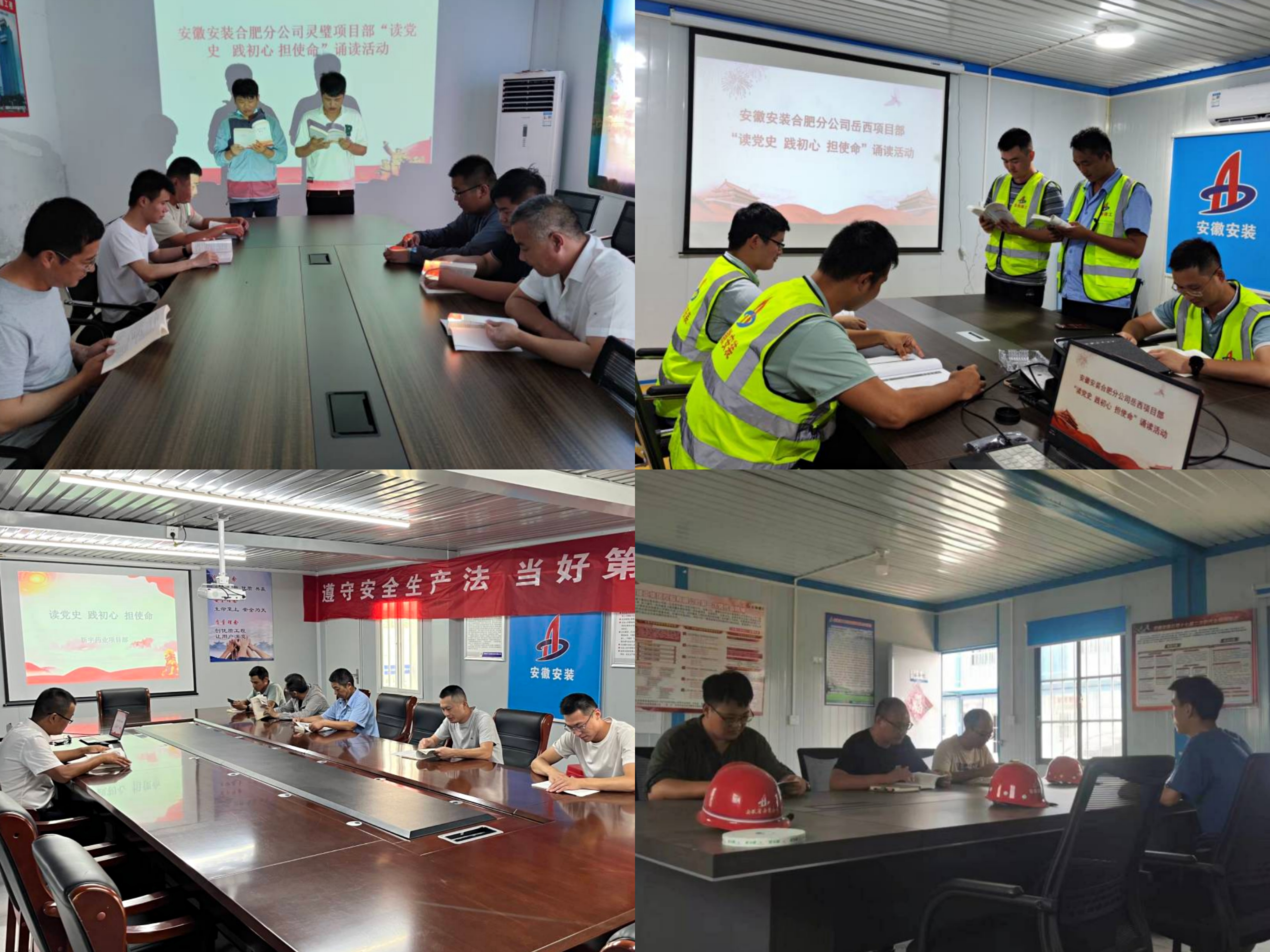 為慶祝中國共產黨成立101周年,進一步弘揚黨的光榮傳統,重溫黨的光輝歷程,傳遞職工愛黨愛國情懷,“七一”前夕,合肥分公司黨支部組織開展了“讀黨史 踐初心 擔使命”誦讀活動。圍繞黨史相關文章、紅色詩詞、紅色家書、紅色故事等內容,分公司機關和項目部廣大黨員職工積極參與。