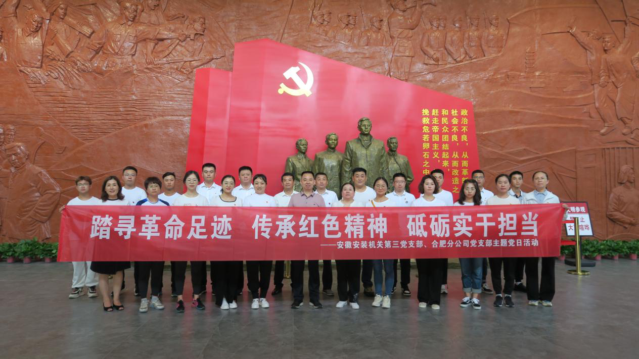 為熱烈慶祝中國共產黨成立101周年,深入學習貫徹習近平新時代中國特色社會主義思想,持續推動黨史學習教育走深走實。7月8日,機關第三黨支部和合肥分公司黨支部聯合開展以“踏尋革命足跡 傳承紅色精神 砥礪實干擔當”為主題的黨日活動,公司黨委書記、董事長胡六中,副總經理李原以普通黨員身份參加活動。