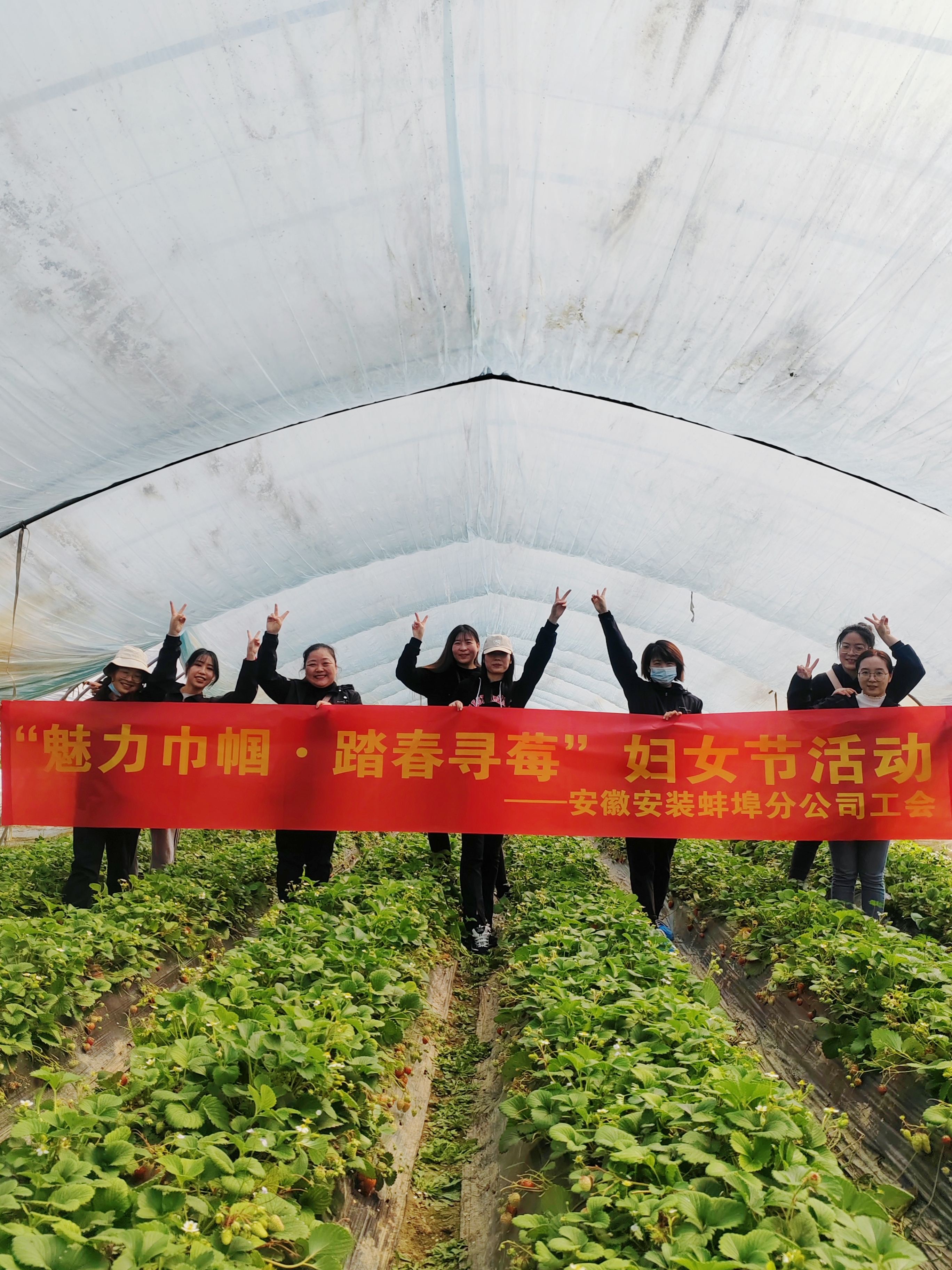 節日當天,在明媚的春光中,分公司全體女職工乘車來到草莓采摘基地。剛進園區,一陣甜蜜的草莓香撲面襲來,一簇簇綠葉托著紅色的果實,像一個個小燈籠,看著鮮美誘人的草莓,大家按捺不住興奮的心情,一邊采摘一邊拍照,體會這親近自然的樂趣,沉浸在勞動的快樂和收獲的喜悅之中,不一會兒,籃子里已是碩果累累,大家臉上都洋溢著燦爛的笑容。