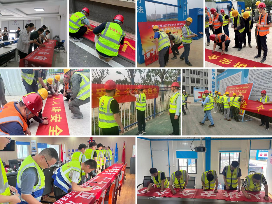 在第二十二個全國“安全生產月”來臨之際,安徽安裝合肥分公司積極響應,全面落實省、市、集團公司以及公司“安全生產月”活動部署。6月1日上午,分公司組織機關及所屬在建項目舉行了“安全生產月”動員會,集中學習了習近平總書記關于安全生產重要論述,并開展了集體安全宣誓、橫幅簽名、觀看2023年安全生產月警示教育片等各項活動。