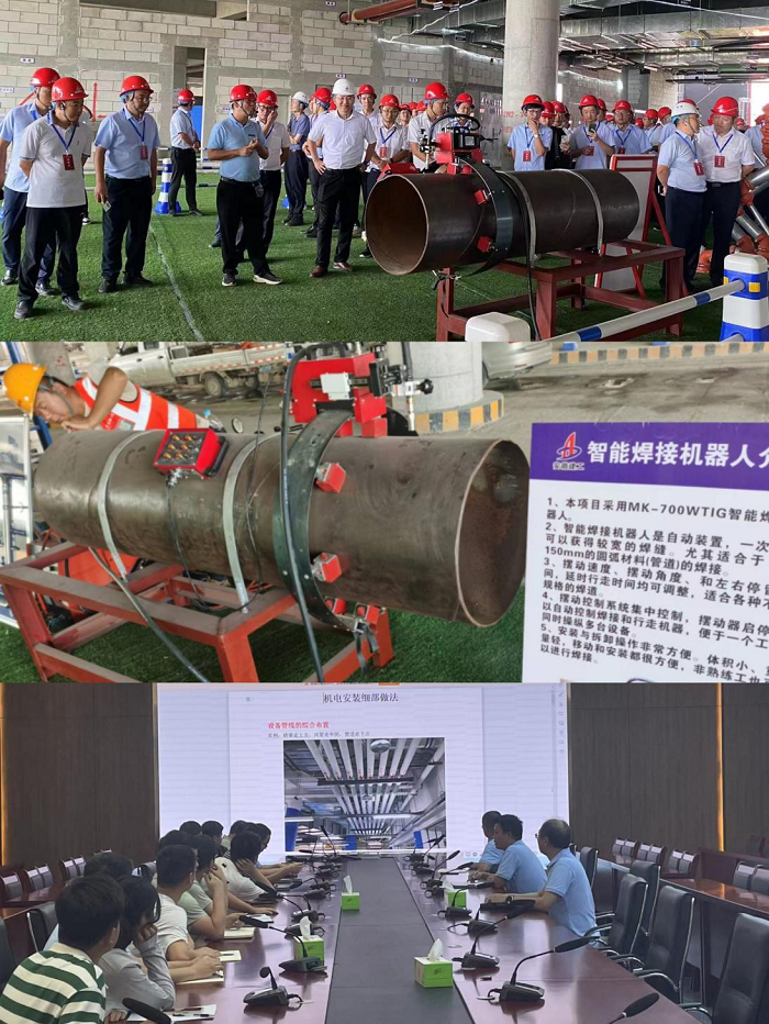 在技術攻關小組成員的帶領下,項目部積極響應國家“雙碳”目標和智能建造要求,創新運用智能焊接機器人代替人工焊接,確?!皹影逡贰狈€定高效實施。技術攻關小組成員經過數次考察試驗,結合實際引入了MK-700WTIG管道焊接小車,它體積小,重量輕,安裝、拆卸和移動方便,兼具標準角焊機簡易輕便的特點,避免了人為因素所造成的焊縫和質量不高現象,可以大幅度提高焊接效率,減少材料損耗和施工返工率,進一步提高生產效率。技術攻關小組先后編制了智能焊接機器人操作指南和工藝視頻,有效幫助指導現場項目人員更好地掌握運用智能焊接機器人技術。通過“BIM+智能焊接機器人”方式,項目部形成了高質量、高標準和穩定的現場施工模式以及數字化、智能化的智慧管理模式,大力推動項目智能建造體系的構建,助推項目降本增效。