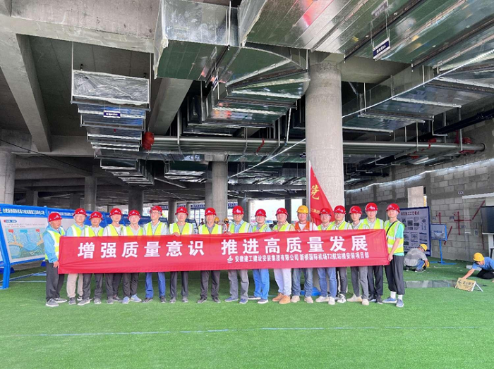 建工安裝新橋國際機場T2航站樓機電安裝項目,位于合肥市新橋國際機場場區內,公司承接的施工范圍包括航站樓南北指廊給排水系統、采暖、通風空調系統、消防及電氣系統安裝等,合同總造價2.747億元,合同工期總日歷天數941天,計劃于2025年10月15日竣工。本工程為省一號重點工程,工程體量大,建筑空間大,施工內容多、難度大、工期緊,質量要求高。自開工建設以來,項目部結合實際,通過設立“黨員示范崗”和成立黨員技術攻關小組,助推項目建設“加速度”。項目黨員同志帶頭研究新工藝、創新使用新方法,大力開展技術攻關,通過不斷摸索實驗,逐步形成了以BIM+“樣板引路”的智慧施工管理模式,在充分發揮黨員先鋒模范作用的同時,進一步提高生產效率和工程質量,促進黨建和生產經營有效融合。