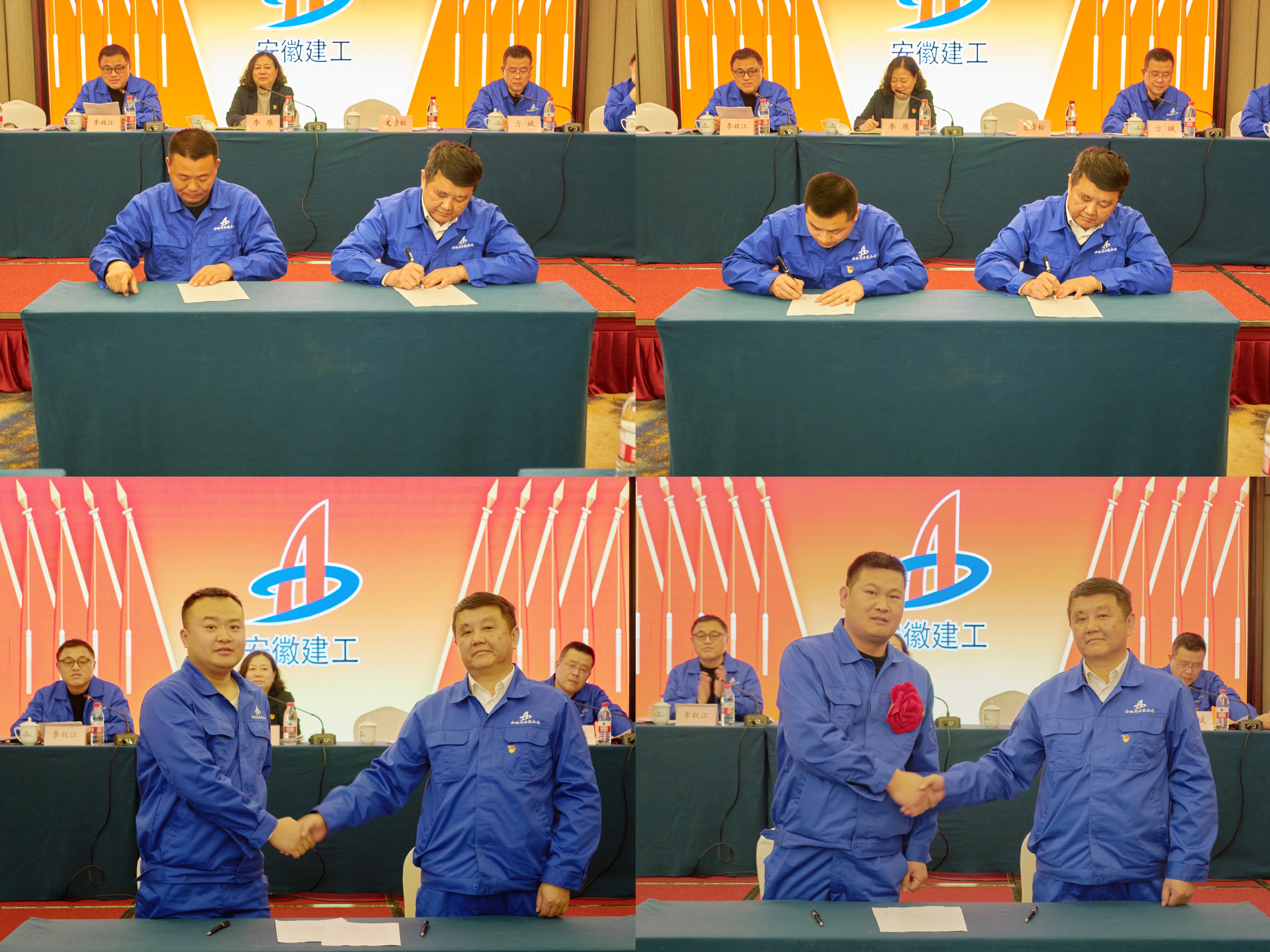 會議期間,分公司與各項目部簽訂了《2024年度目標責任書》、《安全生產責任書》,與各項目經理簽訂了《經營目標責任書》,并對2023年度先進集體和個人進行了表彰。