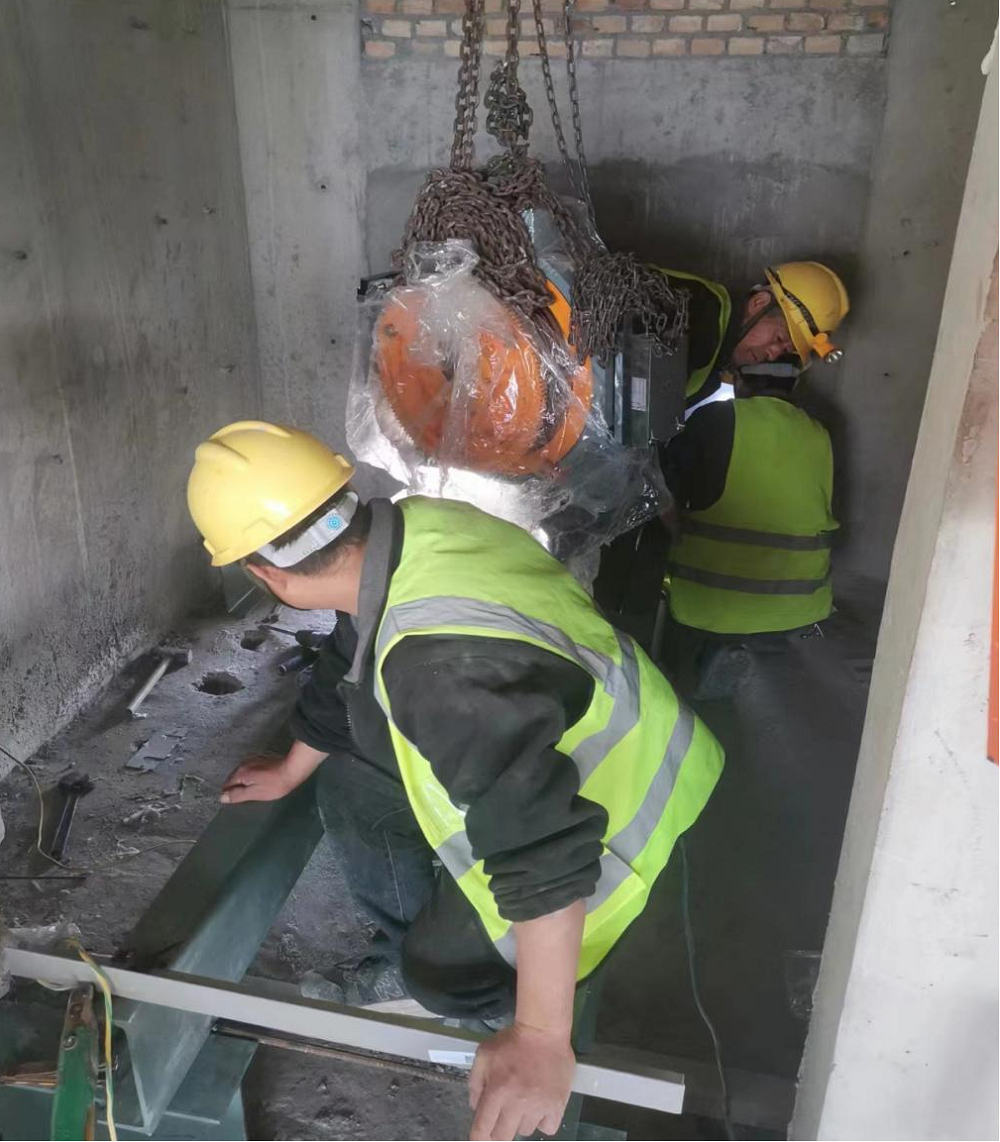 蚌埠和順天宸攬境項目現場安裝人員正在機房內安裝主機及擱機梁