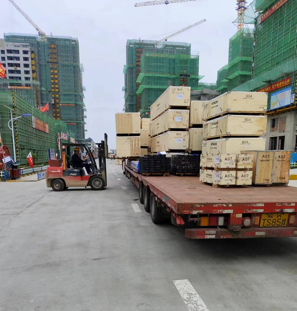 肥西縣鄉村文化旅游配套提升項目現場人員正在給到貨電梯卸貨