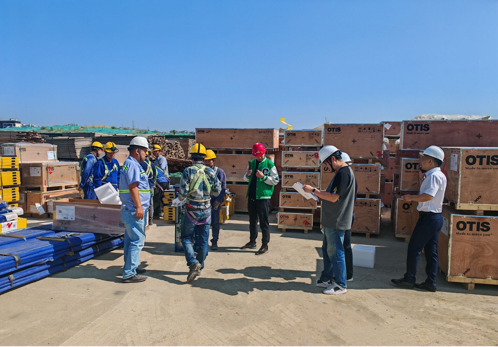 派河印象杏語(yǔ)林溪項(xiàng)目預(yù)計(jì)安裝74臺(tái)電梯,為了確保電梯安裝項(xiàng)目進(jìn)度,項(xiàng)目部提前部署規(guī)劃,合理安排施工工期,該圖為項(xiàng)目部在進(jìn)行現(xiàn)場(chǎng)安全技術(shù)交底。