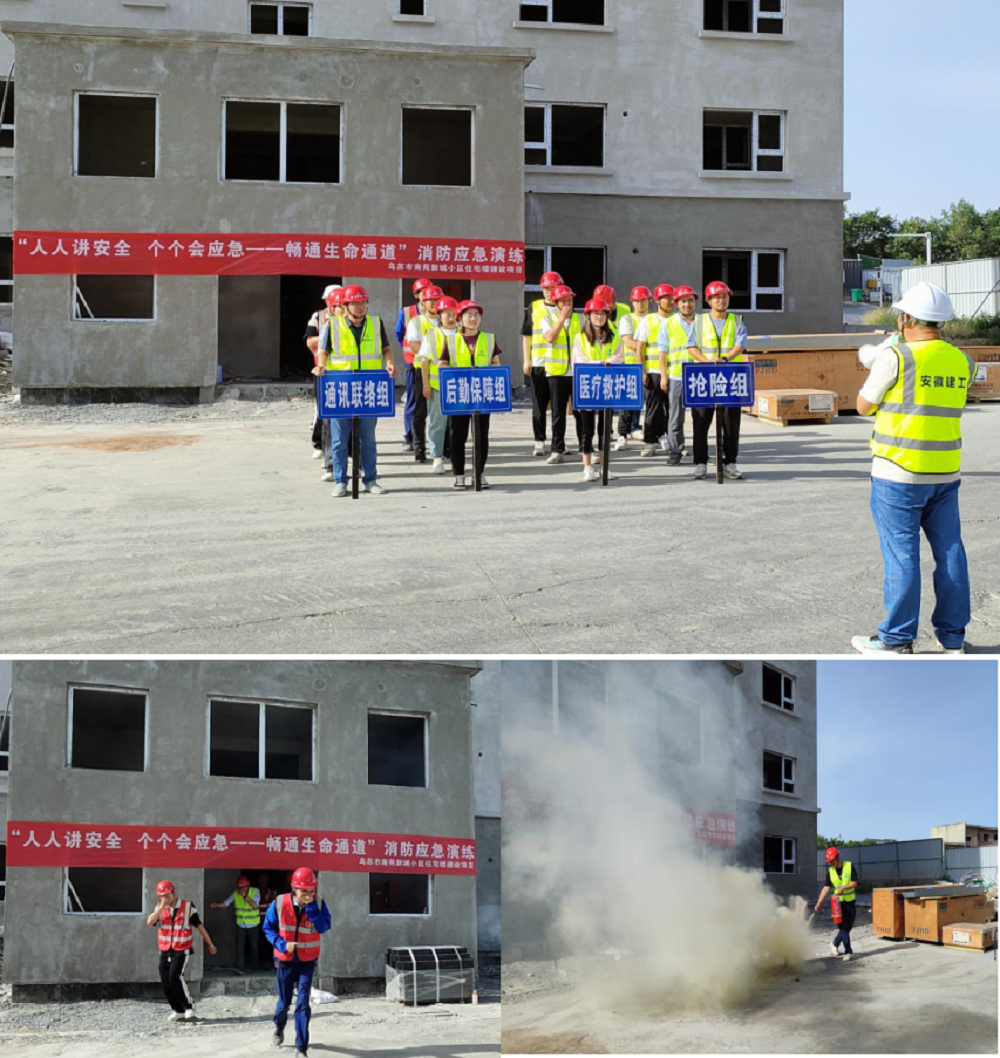 為深入貫徹“人民至上、生命至上”的安全管理理念,提升施工現(xiàn)場(chǎng)人員的消防意識(shí)和應(yīng)急處置能力,切實(shí)踐行“人人講安全、個(gè)個(gè)會(huì)應(yīng)急---暢通生命通道”的安全生產(chǎn)月主題,6月26日,建工安裝烏蘇市南苑新城小區(qū)住宅樓建設(shè)項(xiàng)目組織開(kāi)展了消防應(yīng)急演練。