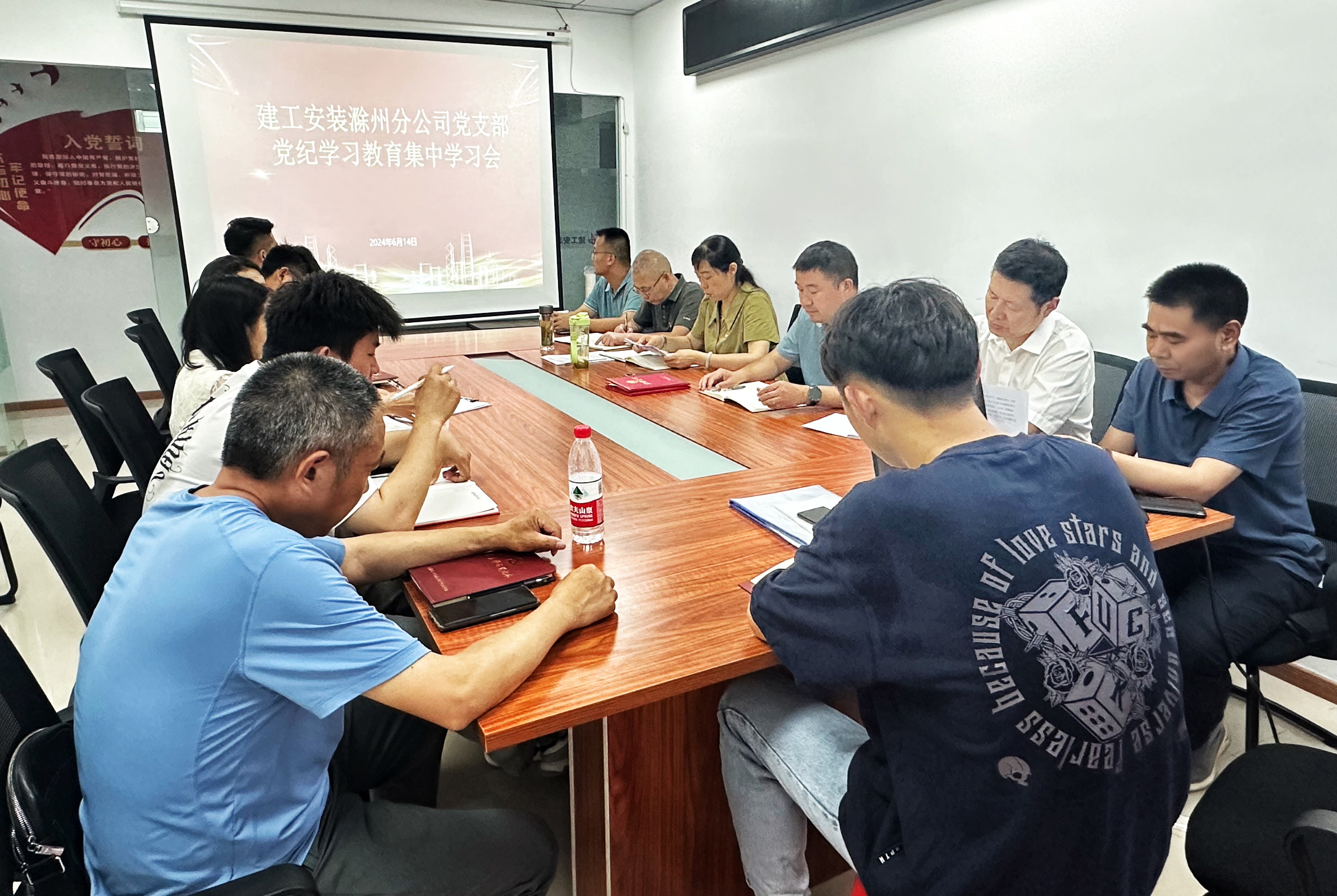 為推動分公司黨紀學習教育深入開展,進一步增強黨員干部職工紀律規(guī)矩意識,6月14日,建工安裝滁州分公司黨支部組織召開了黨紀學習教育集中學習推進會,會議由分公司黨支部書記、副經(jīng)理程茂麗主持。