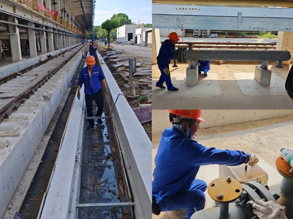 安慶石化新增鐵路接卸純苯設(shè)施項(xiàng)目,土建項(xiàng)目已基本完工,現(xiàn)剩余整體道床排水溝和兩側(cè)回填混凝體澆筑、控制室內(nèi)裝飾裝修等工作;設(shè)備安裝部分完成安裝六臺換熱器、六臺鶴管,預(yù)計九月底完工。圖為道床混凝土澆筑和換熱器安裝。