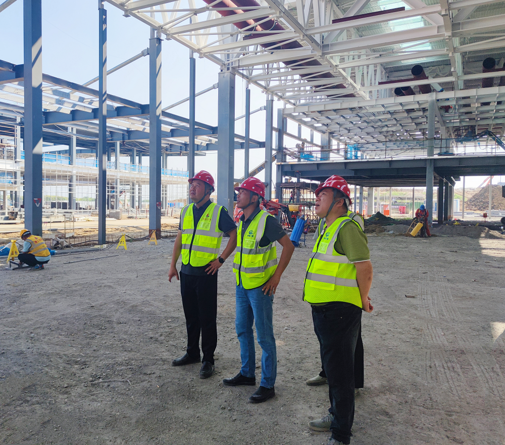 調研期間,董雙武深入項目現場,實地查看現場施工安全、質量、進度及成本情況,與項目管理人員進行了溝通交流,并對項目現場進度管理、安全文明施工、成本、質量等方面給予指導。