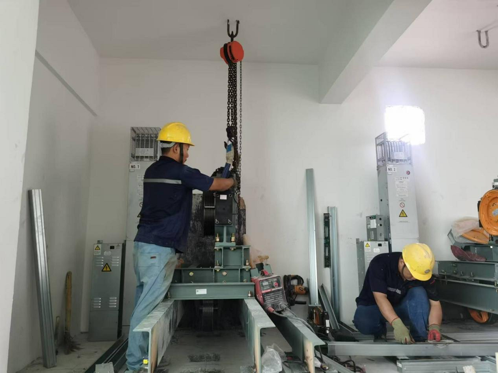 蚌埠經(jīng)開區(qū)消防二中隊項目現(xiàn)場施工人員正在安裝電梯支架