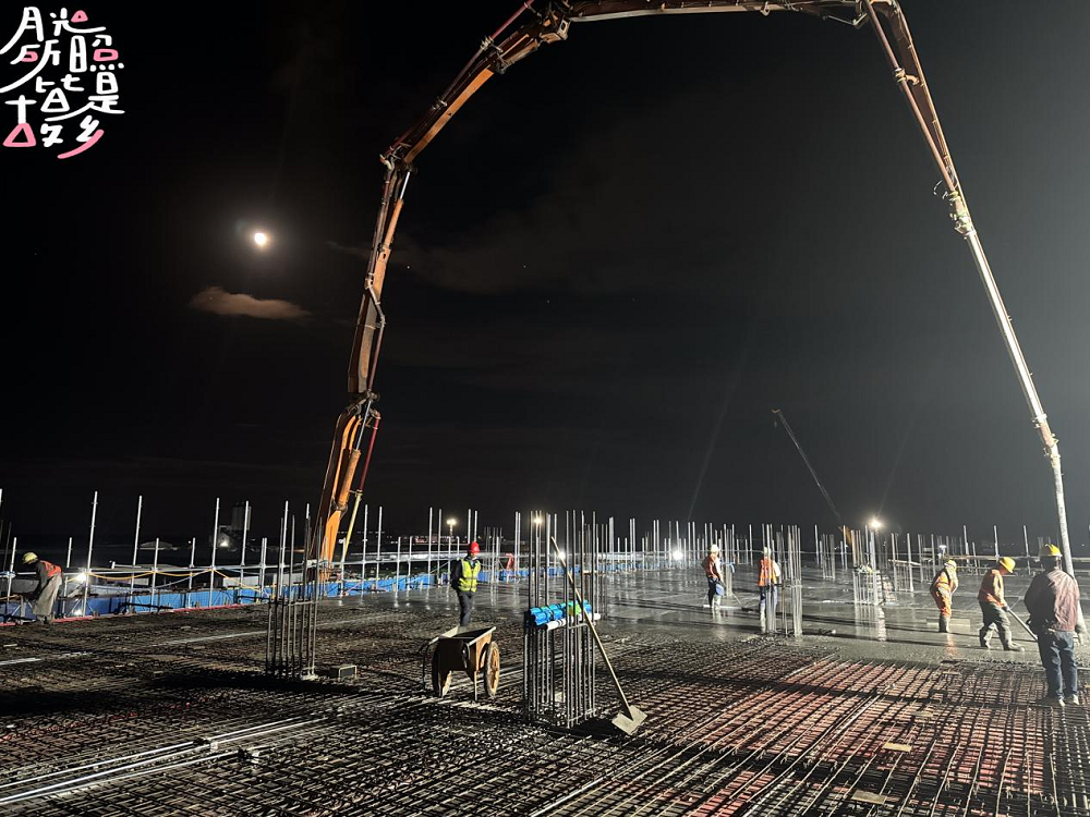 中秋佳節人潮涌,施工大干勢如虹。在青海察爾汗鹽湖區,4萬噸/年基礎鋰鹽一體化納濾反滲透精制廠房建筑工程施工現場火力全開,機械轟鳴陣陣,泵車長臂揮舞,腳手架鱗次櫛比,整個施工作業場景如火如荼。中秋期間,項目配電房、廠房混凝土澆筑及廠房鋼結構安裝等工程施工同步進入大干狀態,目前,配電房一層主體全部完工,二層一二段內外架搭設完畢,廠房基礎工程基本完成,廠房鋼結構安裝完成600噸。項目全體員工嚴格把控安全質量和文明施工,披星戴月、不畏艱難,以實際行動詮釋責任擔當,為如期履約建設優質工程貢獻力量。