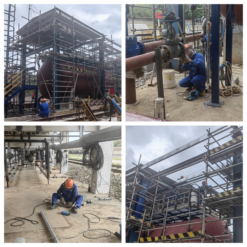 安慶石化新增鐵路接卸純苯設(shè)施項(xiàng)目正在穩(wěn)步推進(jìn)。目前,已拆除舊鶴管6臺(tái)并安裝新鶴管6臺(tái),緩沖罐、污油罐、苯卸車泵也已安裝完畢,現(xiàn)進(jìn)行泵棚鋼結(jié)構(gòu)屋面彩鋼瓦和設(shè)備安裝工作。該項(xiàng)目總體進(jìn)度達(dá)80%,其中鐵路施工已結(jié)束并通過驗(yàn)收交于業(yè)主使用,剩余電氣設(shè)備、工藝管線等施工計(jì)劃于10月完成項(xiàng)目中交。