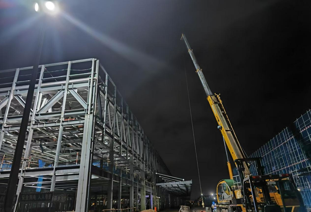 進入9月份以來,新橋智能制造產業園一階段一標機電安裝項目為搶工期,項目進度再提速,項目部不僅放棄正常節假日休息,還同步按下夜間施工“快進鍵”,正式開啟“五加二,白加黑”,24小時輪班制作業。
