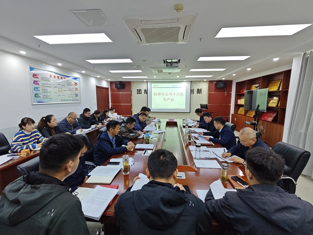 11月1日上午,蚌埠分公司組織召開10月份生產經營調度會,分公司領導班子成員、所屬各項目部、機關各部門負責人及工程管理部全體員工參加會議,會議由分公司副經理張斌主持。