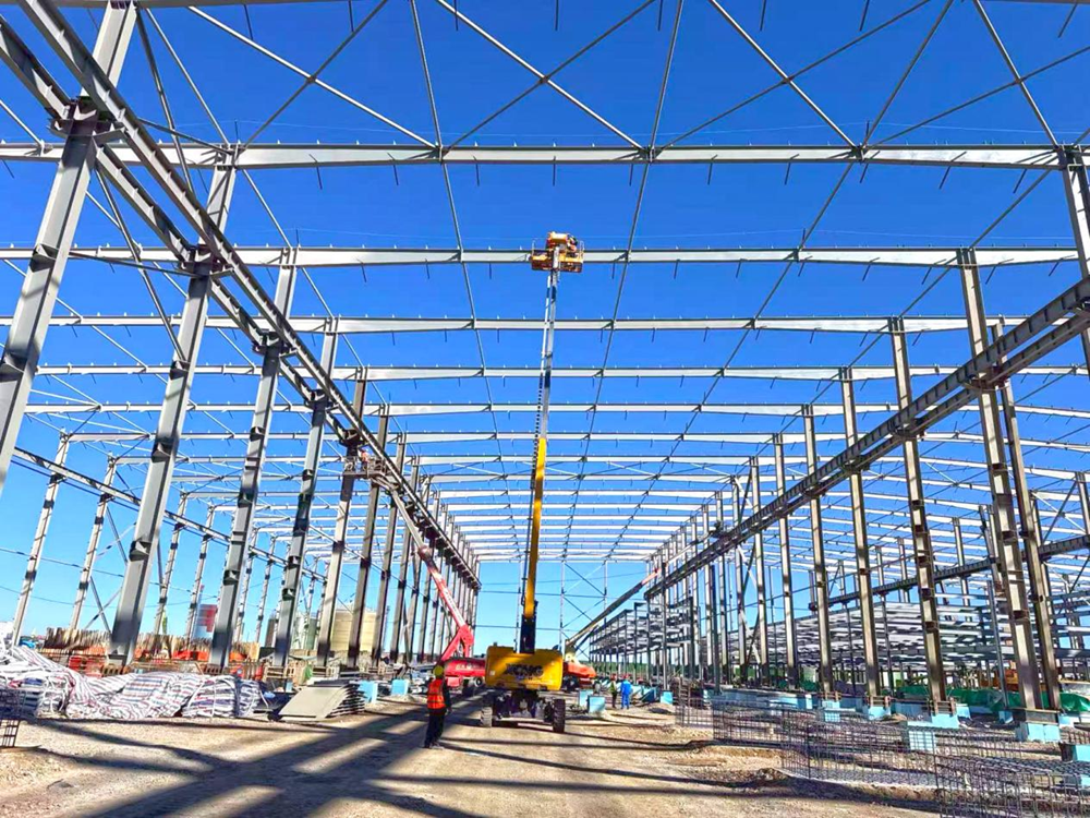 吊車的“長臂”在空中伸展、曲臂車在鋼架間頻繁升降、工程車在場地上來回穿梭、工人們忙碌的身影隨處可見,敲擊聲此起彼伏……針對當(dāng)前重點建設(shè)任務(wù),項目部精細(xì)部署,組織施工力量、細(xì)化節(jié)點安排、調(diào)配人機資源,鼓足干勁、狠抓安全、緊扣進度、全員發(fā)力,克服高海拔的特殊施工環(huán)境和偏遠(yuǎn)地區(qū)的資源保障困難,項目部提出了“奮戰(zhàn)兩月 決勝年末”的戰(zhàn)斗口號,以“拼”的姿態(tài),“搶”的速度,全力沖刺12月底確保完成廠房封閉目標(biāo)節(jié)點。