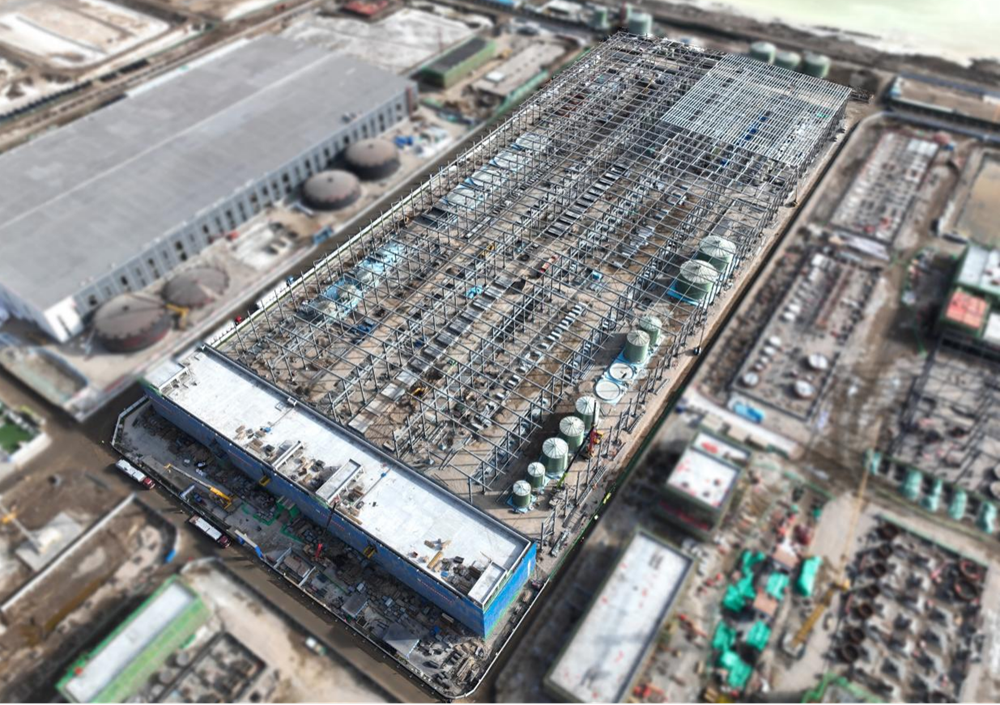 截至目前變電所主體結(jié)構(gòu)封頂,二次結(jié)構(gòu)完成一半;廠房鋼結(jié)構(gòu)主體基本完成,圍護系統(tǒng)進場施工,設(shè)備基礎(chǔ)全部完成。