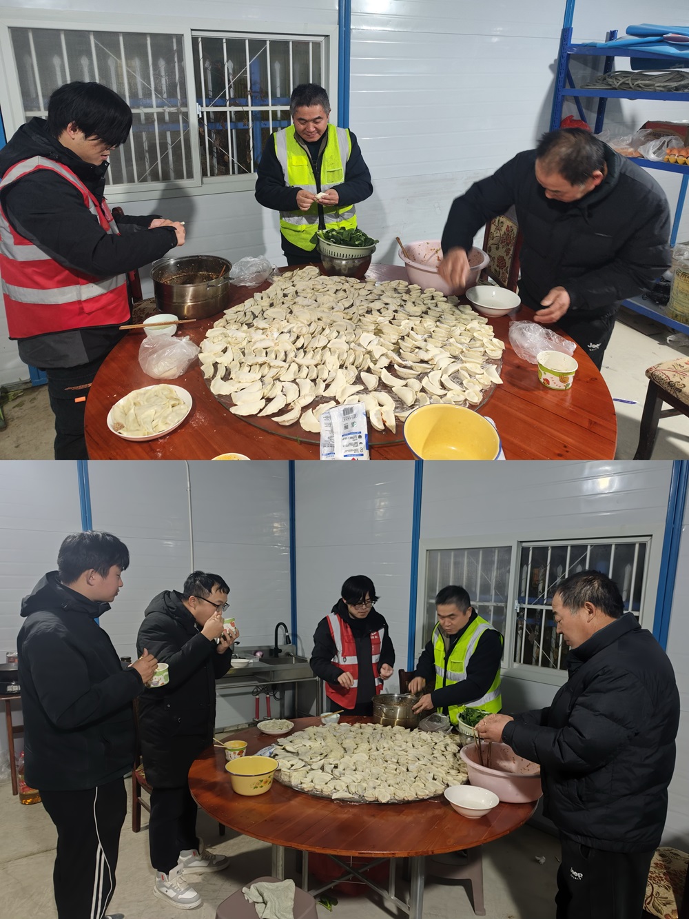 在新橋智能制造產(chǎn)業(yè)園一階段一標(biāo)項(xiàng)目機(jī)電安裝工程項(xiàng)目部,一場(chǎng)同樣歡樂的包餃子活動(dòng)也在如火如荼地進(jìn)行著。項(xiàng)目部的員工們齊聚一堂,大家分工合作,有的負(fù)責(zé)調(diào)餡,確保餡料的口味恰到好處;有的負(fù)責(zé)擺放餃子,將包好的餃子整齊地排列在托盤上。雖然大家都很忙碌,但空氣中洋溢著歡聲笑語。大家一邊包餃子,一邊交流著項(xiàng)目上的工作進(jìn)展和生活趣事,氛圍融洽和諧。