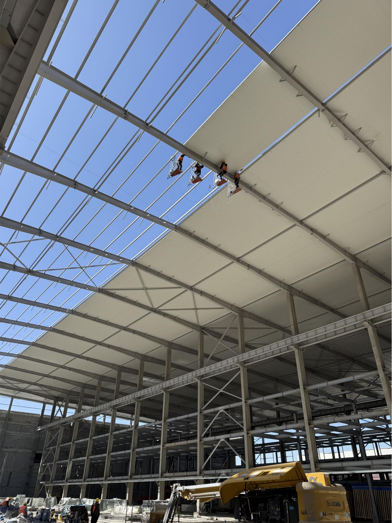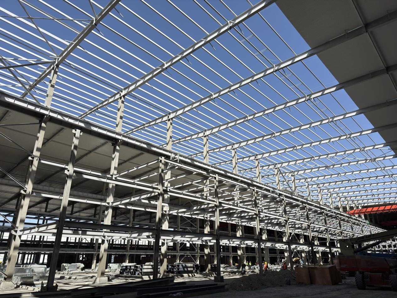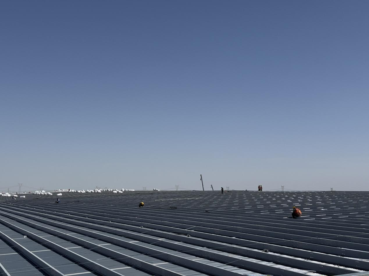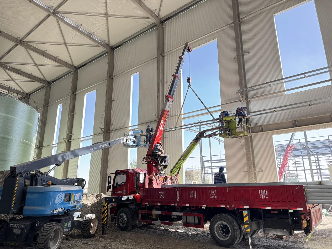 項目地處高海拔鹽湖區(qū),缺氧且淡水匱乏,施工環(huán)境惡劣,資源保障困難。面對不利因素,項目團(tuán)隊迎難而上,積極尋找解決方案,為項目順利推進(jìn)筑牢基礎(chǔ)。截至目前,項目已取得顯著階段性成果,廠房主鋼構(gòu)全部完成,管廊鋼結(jié)構(gòu)完成約95%,防火涂料完成80%,屋面及墻面圍護(hù)結(jié)構(gòu)完成約50%,配電房裝飾裝修工作有序進(jìn)行,各項任務(wù)按計劃穩(wěn)步推進(jìn)。