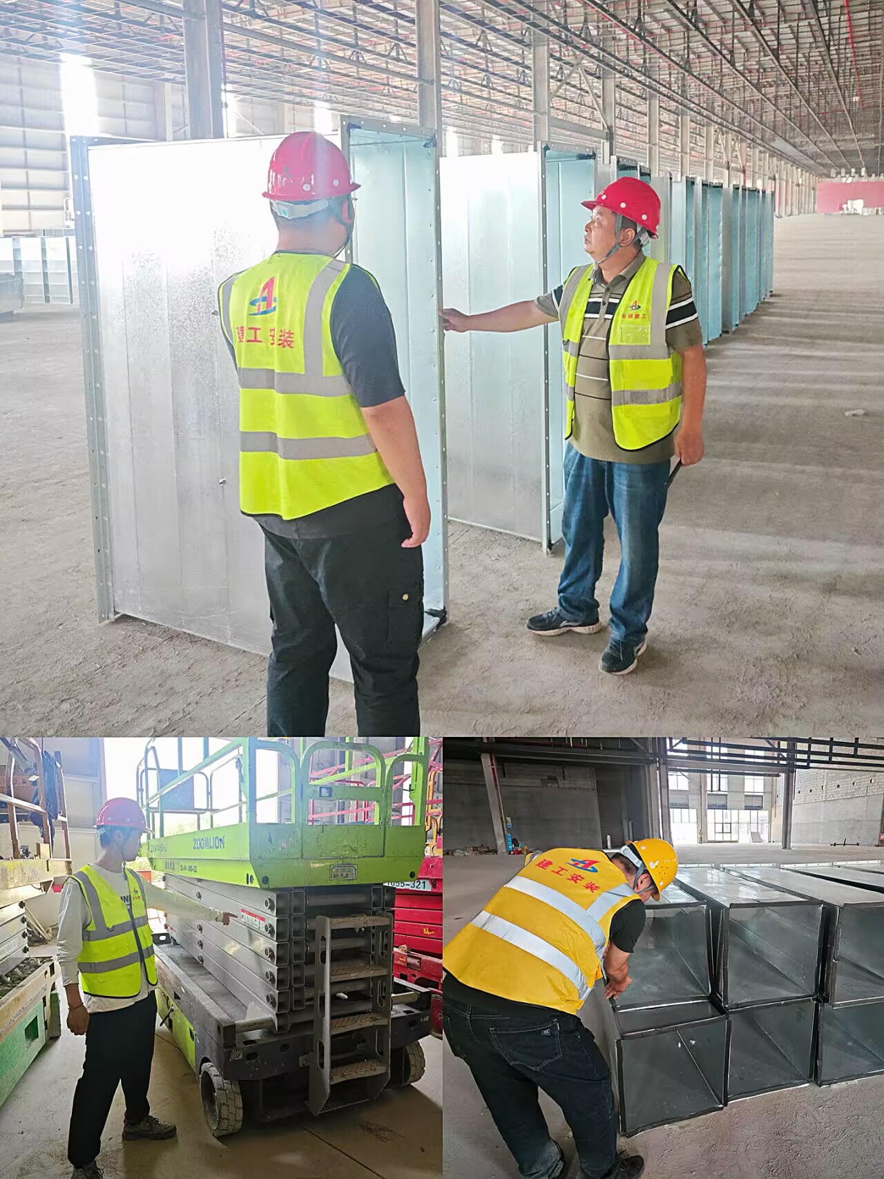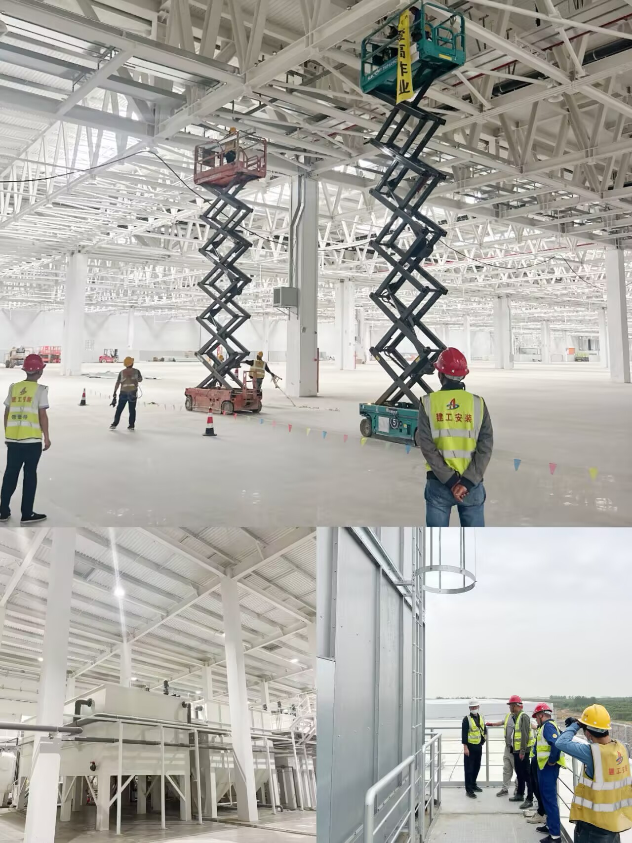 走進(jìn)項(xiàng)目施工現(xiàn)場(chǎng),銀灰色的鋼結(jié)構(gòu)廠房在陽(yáng)光下熠熠生輝,長(zhǎng)達(dá)百米的標(biāo)準(zhǔn)化車間整齊排列,工業(yè)美學(xué)與實(shí)用功能完美融合。現(xiàn)場(chǎng)管理人員正在監(jiān)督支吊架整改安裝、冷卻塔設(shè)備避雷針安裝交底等,其中污水處理站安裝調(diào)試已完成,下一步全體人員將以高效率和高標(biāo)準(zhǔn)推動(dòng)項(xiàng)目順利通過(guò)竣工驗(yàn)收。